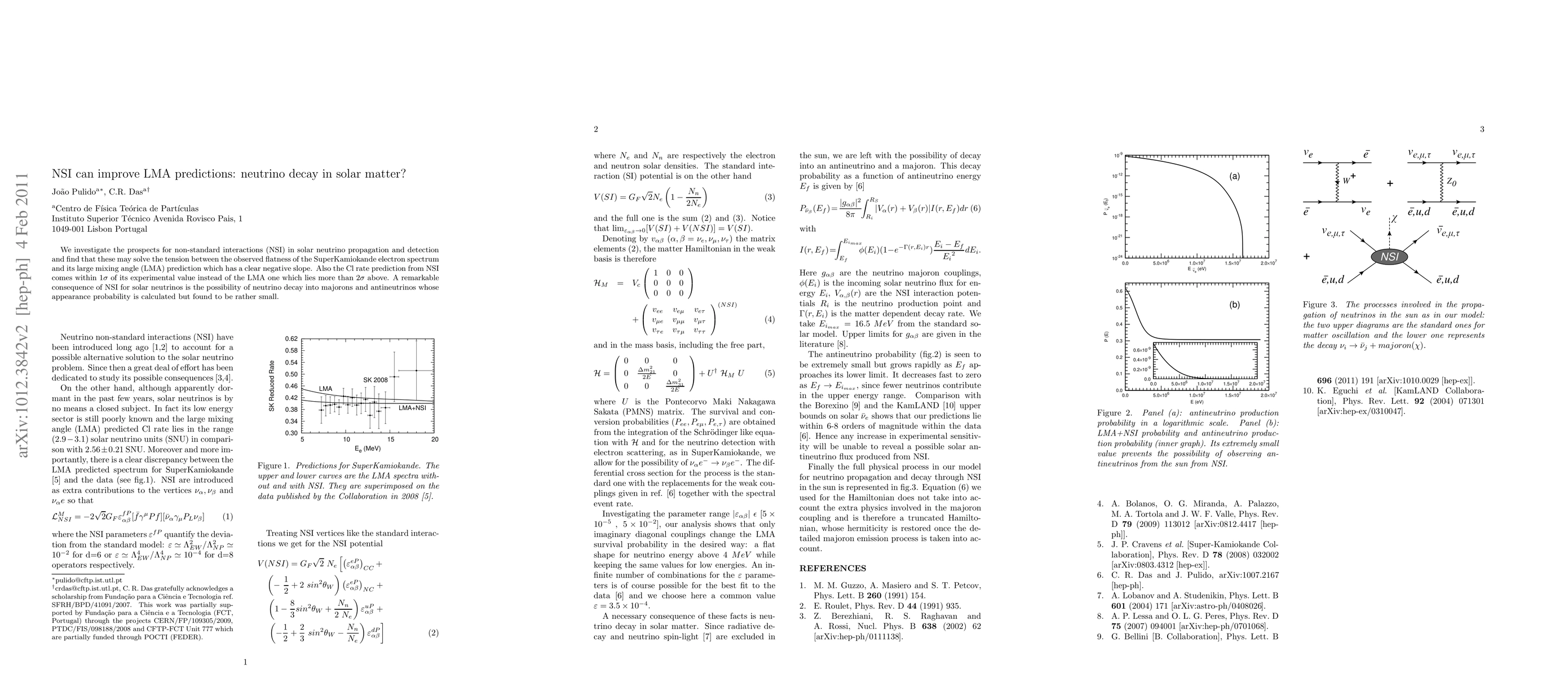 This paper explores the potential of non-standard interactions (NSI) in solar neutrino propagation to resolve discrepancies between observed SuperKamiokande electron spectrum data and predictions from the large mixing angle (LMA) model. NSI also improves the Cl rate prediction, suggesting a possible role in neutrino decay into majorons and antineutrinos, though the decay probability remains low.