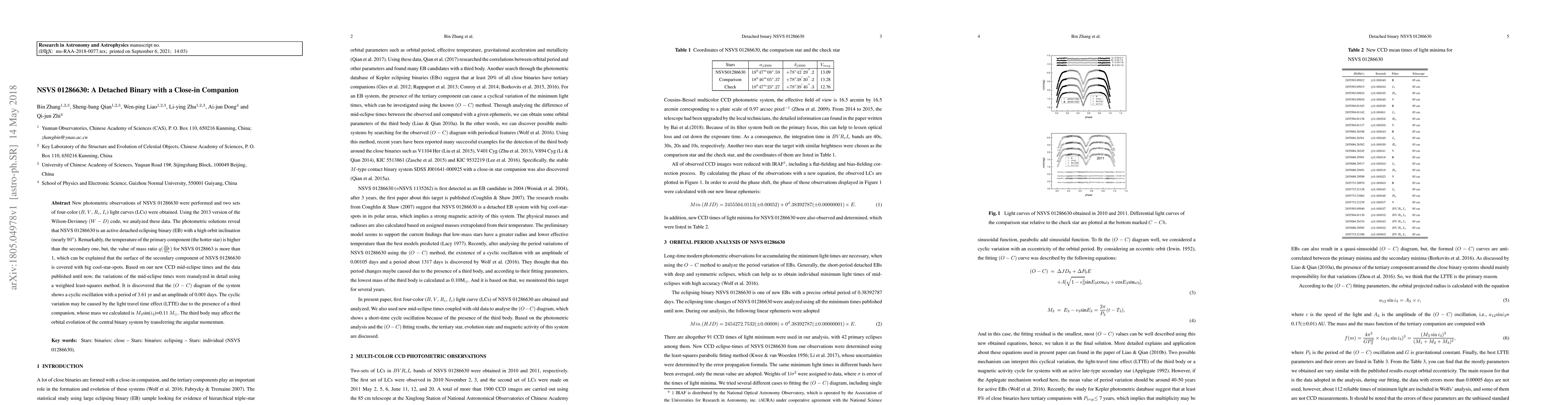 The NSVS 01286630 detached binary system was found to have a close-in companion that affects its orbital evolution, causing a cyclic oscillation in the mid-eclipse times with a period of 3.61 years.