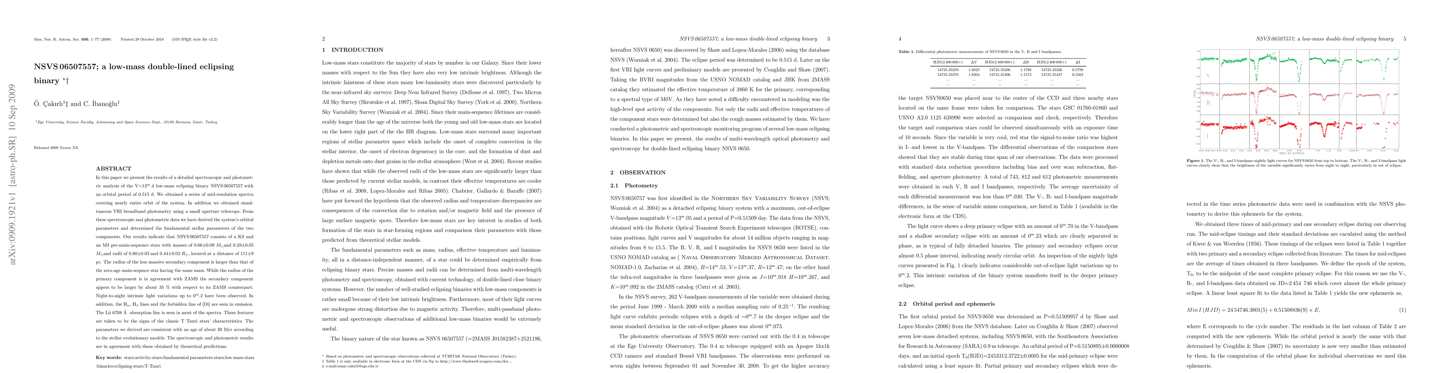 In this paper we present the results of a detailed spectroscopic and photometric analysis of the V=13$^m$.4 low-mass eclipsing binary NSVS 06507557 with an orbital period of 0.515 d. We obtained a series of mid-resolution spectra covering nearly entire orbit of the system. In addition we obtained simultaneous VRI broadband photometry using a small aperture telescope. From these spectroscopic and photometric data we have derived the system's orbital parameters and determined the fundamental stellar parameters of the two components. Our results indicate that NSVS 06507557 consists of a K9 and an M3 pre-main-sequence stars with masses of 0.66$\pm$0.09 \Msun and 0.28$\pm$0.05 \Msun and radii of 0.60$\pm$0.03 and 0.44$\pm$0.02 \Rsun, located at a distance of 111$\pm$9 pc. The radius of the less massive secondary component is larger than that of the zero-age main-sequnce star having the same mass. While the radius of the primary component is in agreement with ZAMS the secondary component appers to be larger by about 35 % with respect to its ZAMS counterpart. Night-to-night intrinsic light variations up to 0$^m$.2 have been observed. In addition, the H$_{\alpha}$, H$_{\beta}$ lines and the forbidden line of [O{\sc i}] are seen in emission. The Li{\sc i} 6708 \AA absorption line is seen in most of the spectra. These features are taken to be the signs of the classic T Tauri stars' characteristics. The parameters we derived are consistent with an age of about 20 Myr according to the stellar evolutionary models. The spectroscopic and photometric results are in agreement with those obtained by theoretical predictions.