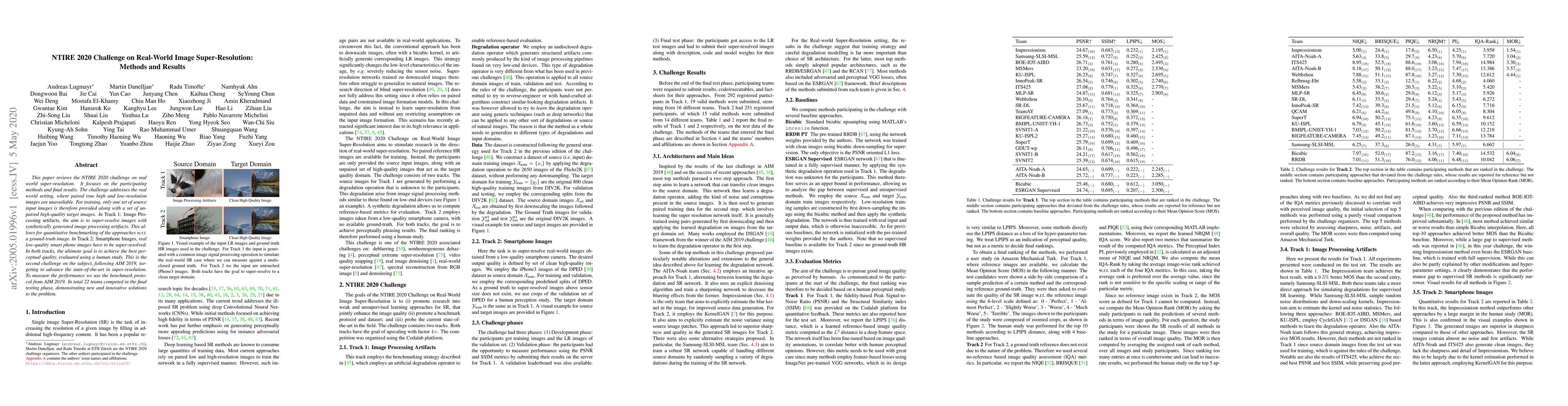 This paper summarizes the NTIRE 2020 Challenge on real-world image super-resolution, reviewing the methods and results of 22 competing teams. The challenge focuses on super-resolving images with artifacts and low-quality smartphone photos, evaluated for perceptual quality using human studies.