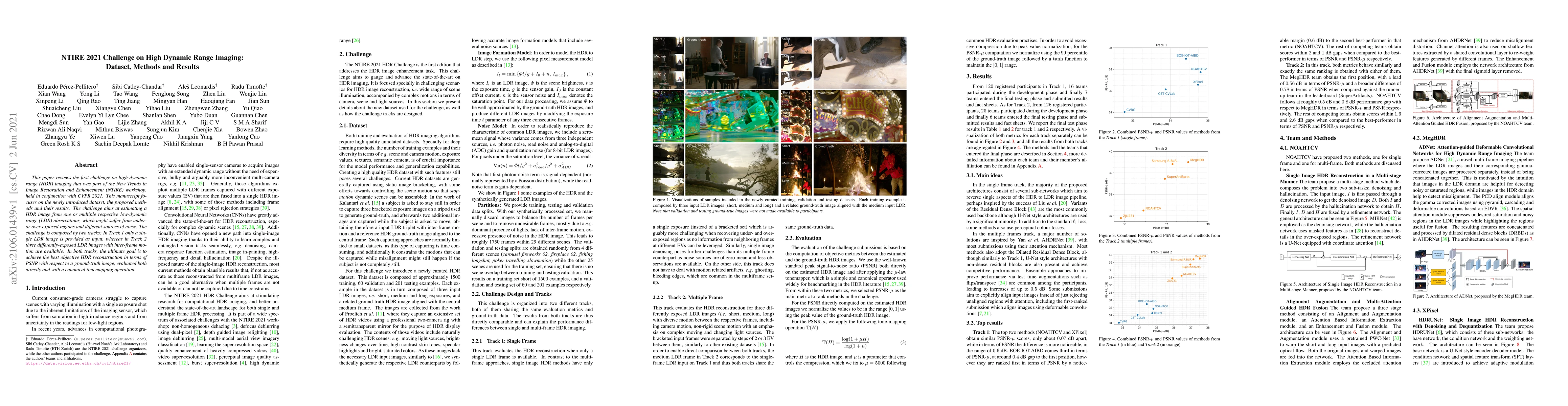 Researchers presented a dataset and methods for estimating high-dynamic range (HDR) images from low-dynamic range observations, with the goal of achieving the best HDR reconstruction in terms of PSNR. The challenge demonstrated improvements in HDR imaging, offering potential applications in various fields such as photography and video production.