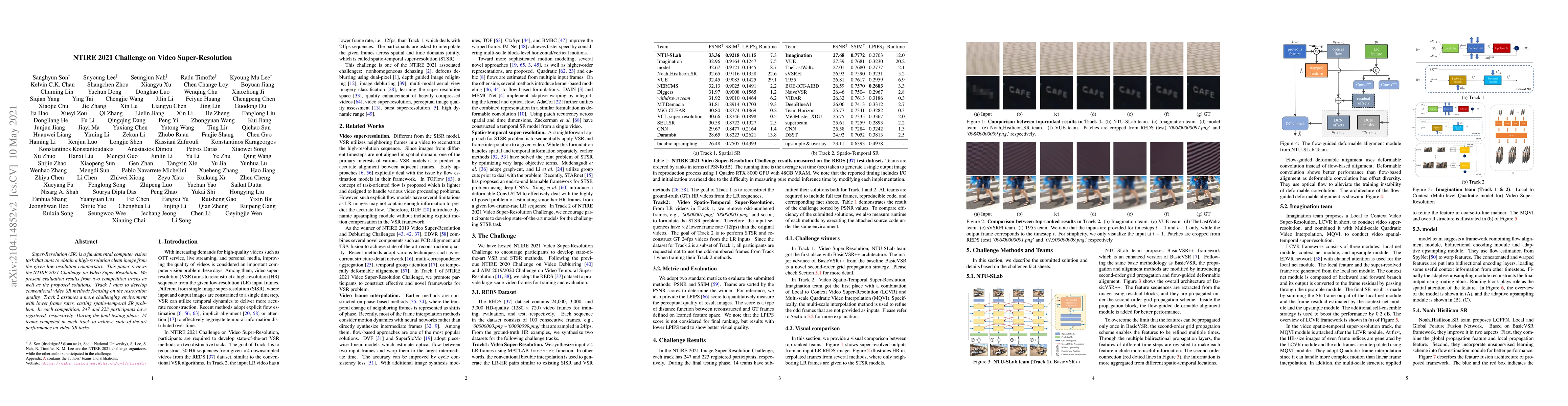 Super-Resolution (SR) is a fundamental computer vision task that aims to obtain a high-resolution clean image from the given low-resolution counterpart. This paper reviews the NTIRE 2021 Challenge on Video Super-Resolution. We present evaluation results from two competition tracks as well as the proposed solutions. Track 1 aims to develop conventional video SR methods focusing on the restoration quality. Track 2 assumes a more challenging environment with lower frame rates, casting spatio-temporal SR problem. In each competition, 247 and 223 participants have registered, respectively. During the final testing phase, 14 teams competed in each track to achieve state-of-the-art performance on video SR tasks.