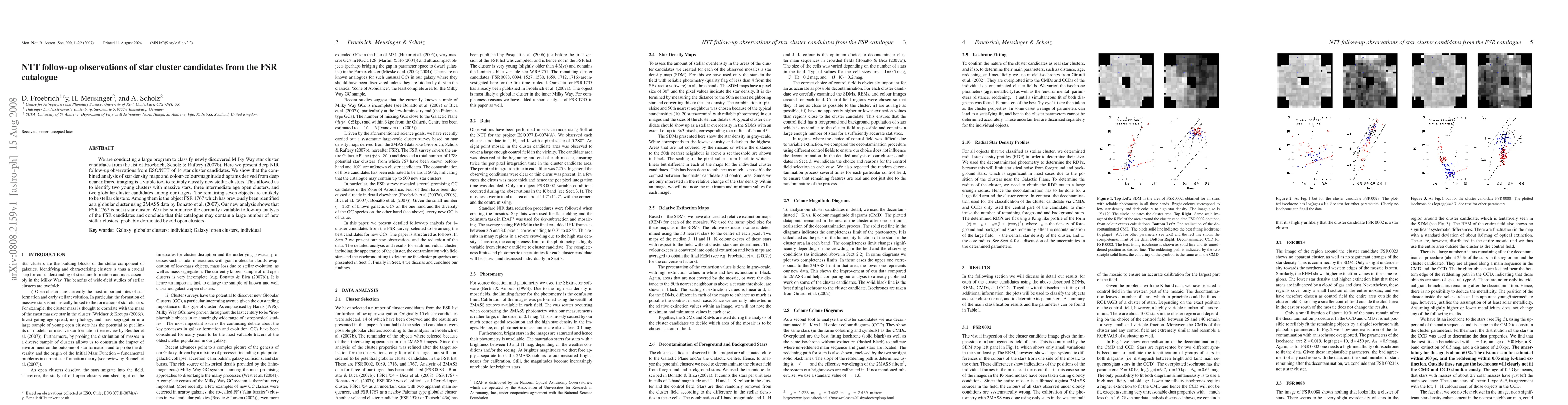 We are conducting a large program to classify newly discovered Milky Way star cluster candidates from the list of Froebrich, Scholz & Raftery (2007). Here we present deep NIR follow-up observations from ESO/NTT of 14 star cluster candidates. We show that the combined analysis of star density maps and colour-colour/magnitude diagrams derived from deep near-infrared imaging is a viable tool to reliably classify new stellar clusters. This allowed us to identify two young clusters with massive stars, three intermediate age open clusters, and two globular cluster candidates among our targets. The remaining seven objects are unlikely to be stellar clusters. Among them is the object FSR1767 which has previously been identified as a globular cluster using 2MASS data by Bonatto et al. (2007). Our new analysis shows that FSR1767 is not a star cluster. We also summarise the currently available follow-up analysis of the FSR candidates and conclude that this catalogue may contain a large number of new stellar clusters, probably dominated by old open clusters.
