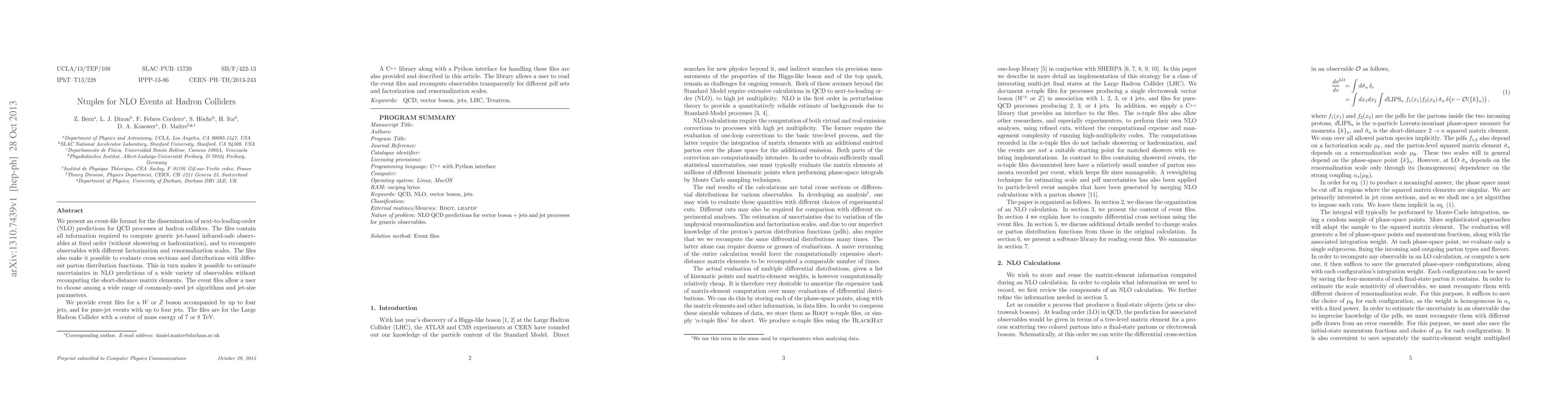 The paper presents an event-file format for disseminating next-to-leading-order (NLO) predictions for QCD processes at hadron colliders, containing all necessary information for computing jet-based infrared-safe observables and recomputing them with different scales.