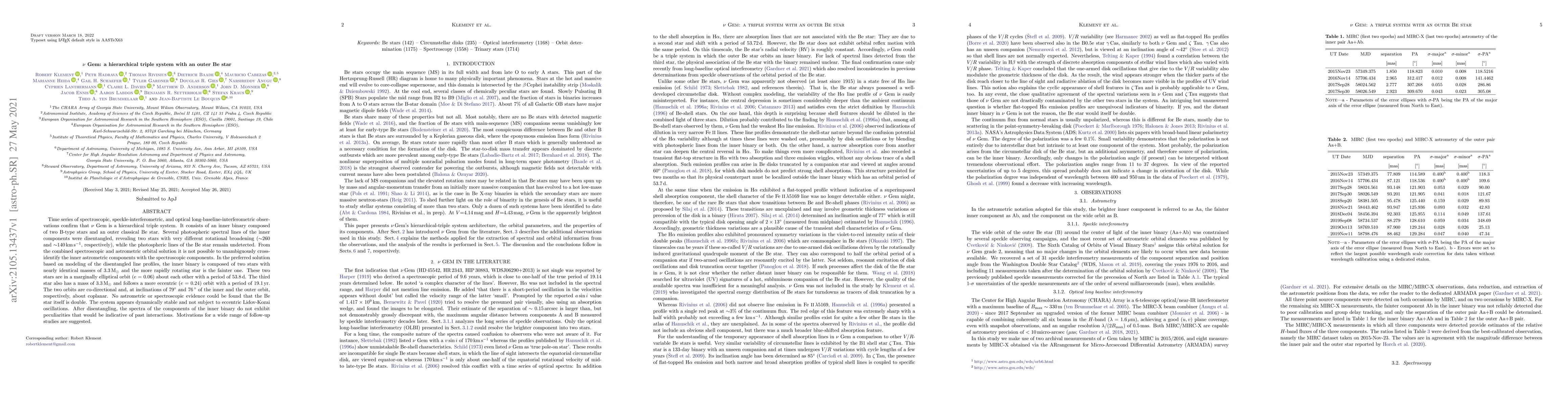 A hierarchical triple system, $ u$ Gem, consists of an inner binary of two B-type stars and an outer classical Be star, with the inner binary having nearly identical masses and a marginally elliptical orbit.
