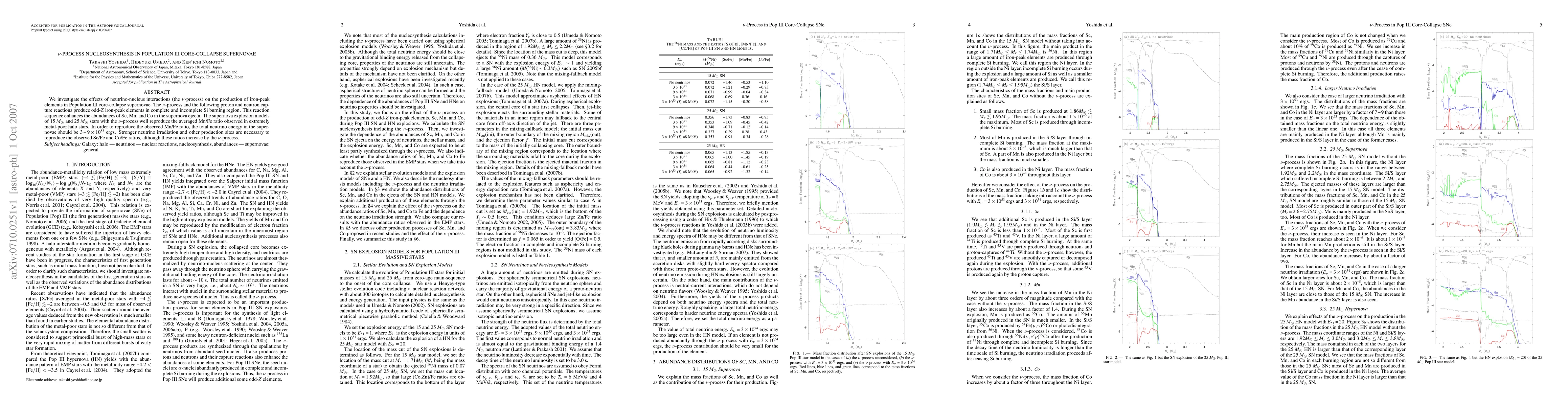 Researchers investigate the nu-process in Population III core-collapse supernovae, finding it enhances iron-peak element abundances like Sc, Mn, and Co, which reproduces observed ratios in extremely metal-poor stars.