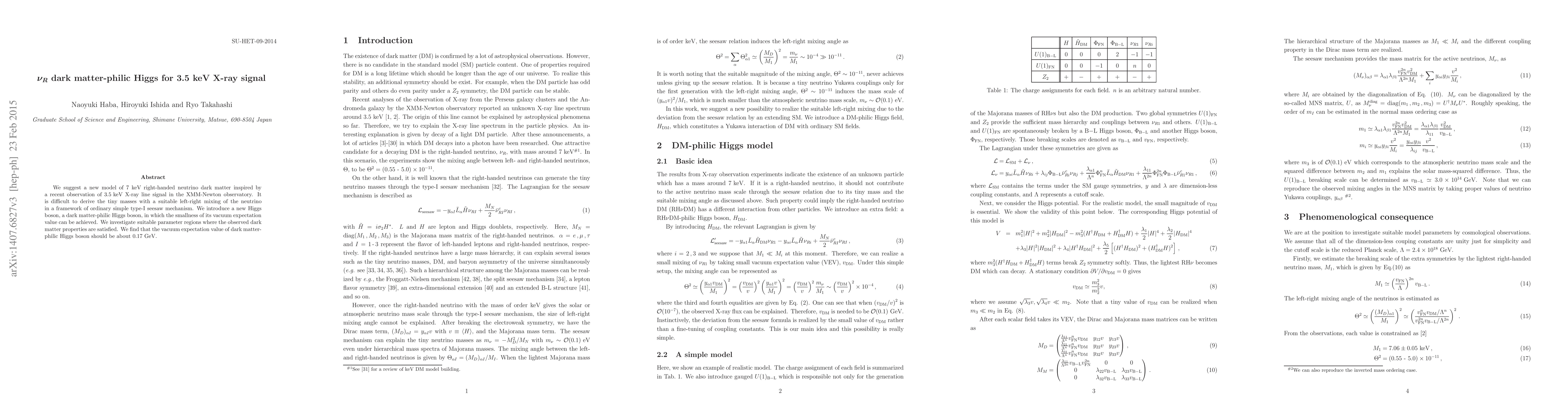This paper proposes a new model featuring right-handed neutrino dark matter linked to a 3.5 keV X-ray signal, introducing a dark matter-philic Higgs boson to achieve the required small mass. The model finds that the vacuum expectation value of this Higgs boson should be around 0.17 GeV to satisfy observed dark matter properties.