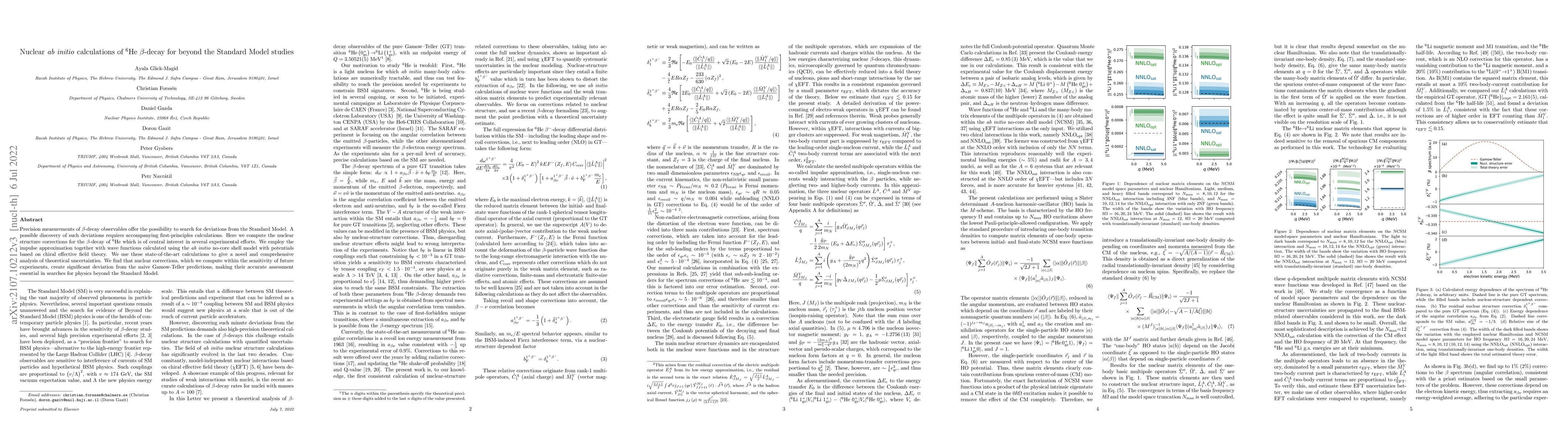 This paper presents ab initio calculations for the $\beta$-decay of $^6$He, employing the no-core shell model with chiral effective field theory to compute nuclear structure corrections. The study highlights the importance of these corrections in searches for physics beyond the Standard Model, revealing significant deviations from naive predictions.