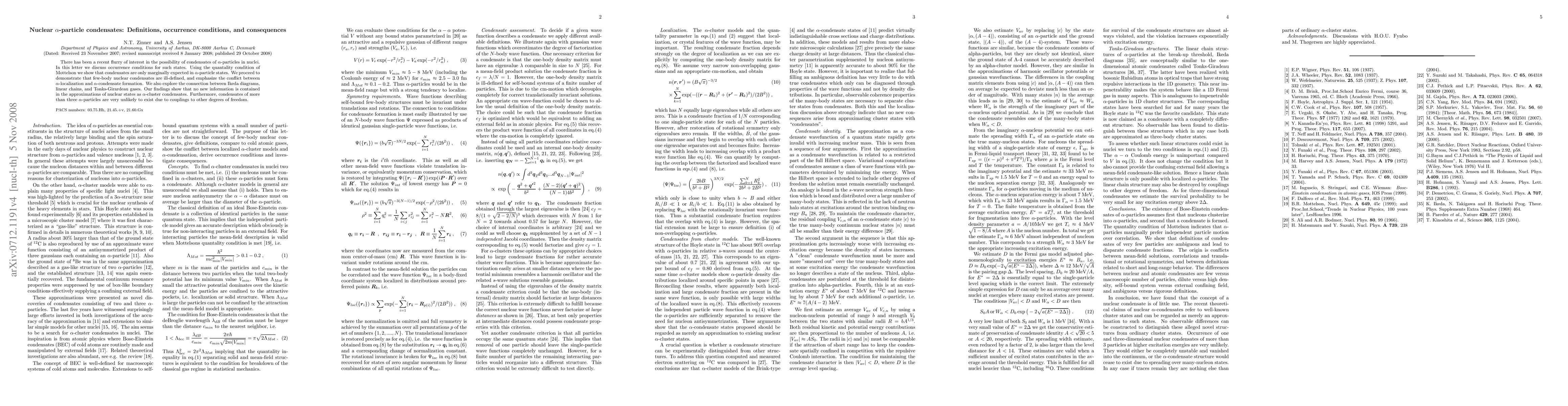 The paper presents a detailed analysis of occurrence conditions for alpha-particle condensates, clarifying the ambiguities in defining few-body condensates, and connecting nuclear structures to Tonks-Girardeau gases.