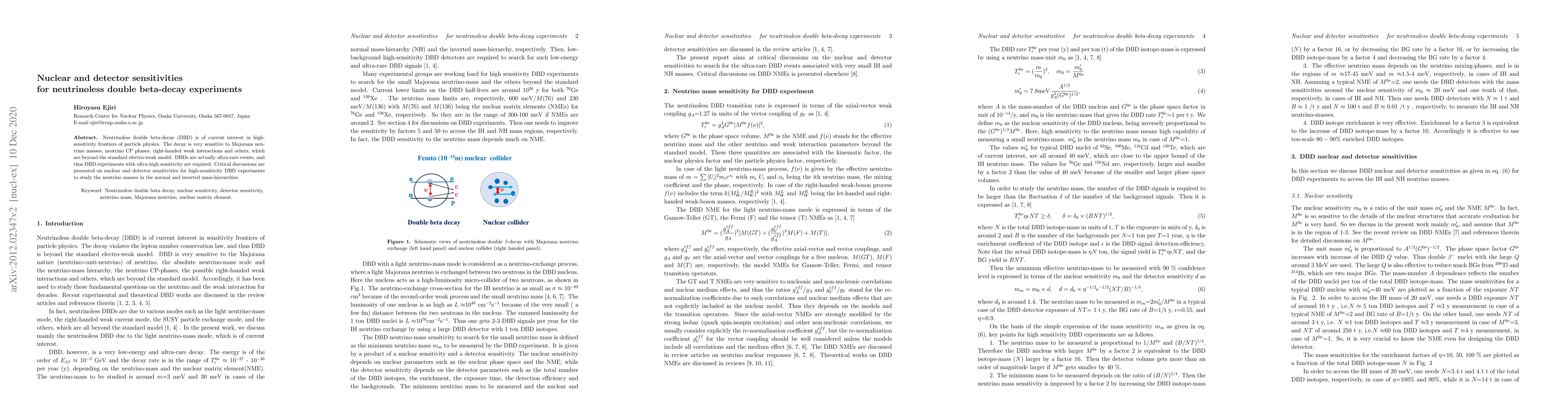 Neutrinoless double beta-decay(DBD) is of current interest in high-sensitivity frontiers of particle physics. The decay is very sensitive to Majorana neutrinos masses, neutrino CP phases, right-handed weak interactions and others, which are beyond the standard electro-weal model. DBDs are actually ultra-rare events, and thus DBD experiments with ultra-high sensitivity are required. Critical discussions are presented on nuclear and detector sensitivities for high-sensitivity DBD experiments to study the neutrino masses in the normal and inverted hierarchies.