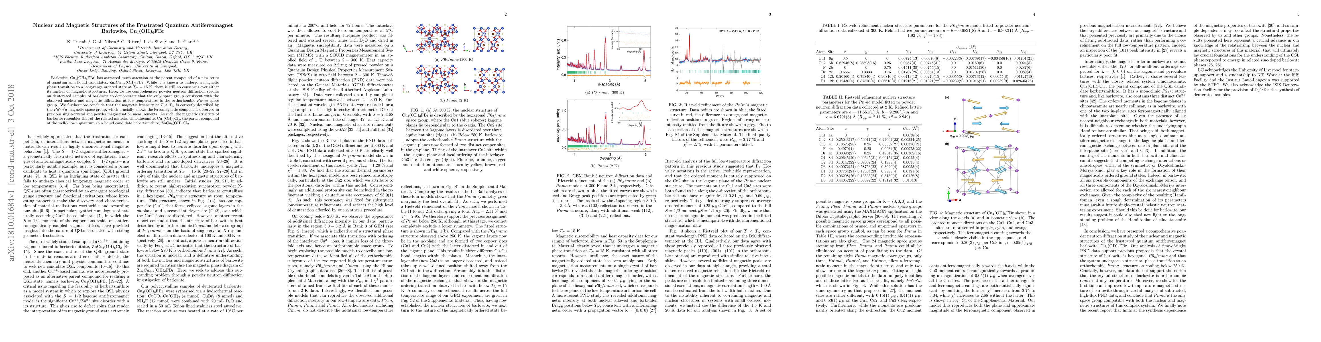 Barlowite, Cu$_{4}$(OH)$_{6}$FBr, has attracted much attention as the parent compound of a new series of quantum spin liquid candidates, Zn$_{x}$Cu$_{4-x}$(OH)$_{6}$FBr. While it is known to undergo a magnetic phase transition to a long-range ordered state at $T_{N} = 15$ K, there is still no consensus over either its nuclear or magnetic structures. Here, we use comprehensive powder neutron diffraction studies on deuterated samples of barlowite to demonstrate that the only space group consistent with the observed nuclear and magnetic diffraction at low-temperatures is the orthorhombic $Pnma$ space group. We furthermore conclude that the magnetic intensity at $T < T_{N}$ is correctly described by the $Pn^\prime m^\prime a$ magnetic space group, which crucially allows the ferromagnetic component observed in previous single-crystal and powder magnetisation measurements. As such, the magnetic structure of barlowite resembles that of the related material clinoatacamite, Cu$_{4}$(OH)$_{6}$Cl$_{2}$, the parent compound of the well-known quantum spin liquid candidate hebertsmithite, ZnCu$_{3}$(OH)$_{6}$Cl$_{2}$.
