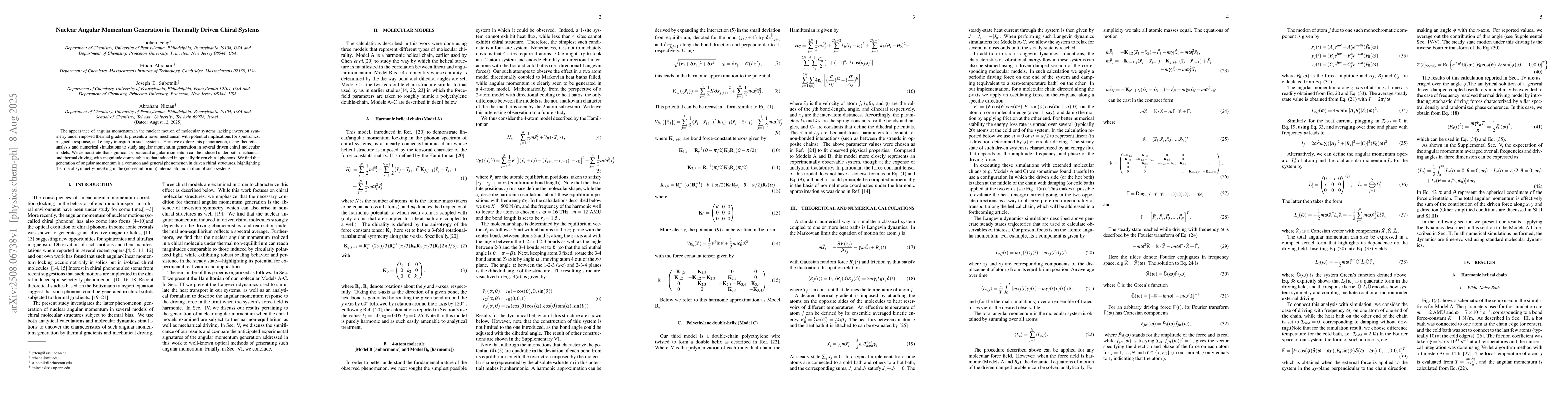 The appearance of angular momentum in the nuclear motion of molecular systems lacking inversion symmetry under imposed thermal gradients presents a novel mechanism with potential implications for spintronics, magnetic response, and energy transport in such systems. Here we explore this phenomenon, using theoretical analysis and numerical simulations to study angular momentum generation in several driven chiral molecular models. We demonstrate that significant vibrational angular momentum can be induced under both mechanical and thermal driving, with magnitude comparable to that induced in optically driven chiral phonons. We find that generation of angular momentum is a common and general phenomenon in driven chiral structures, highlighting the role of symmetry-breaking in the (non-equilibrium) internal atomic motion of such systems.