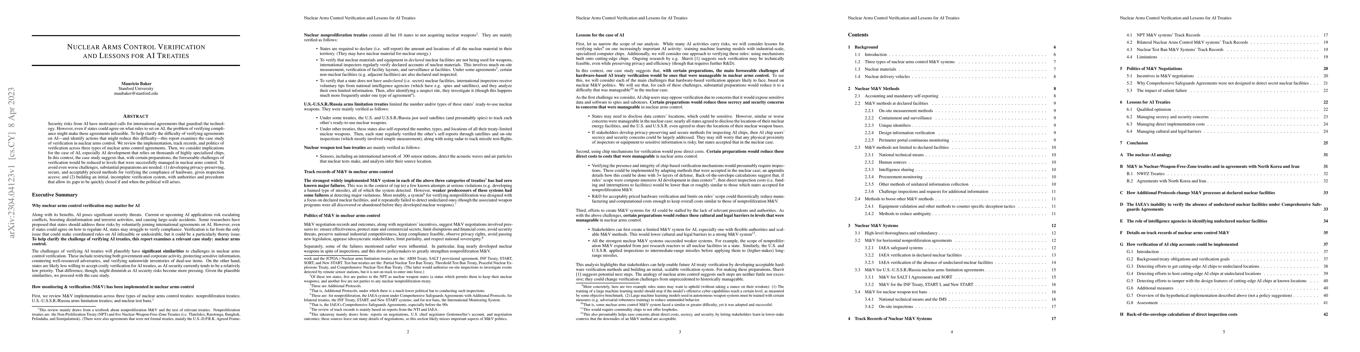This paper examines the verification challenges in nuclear arms control to draw lessons for potential AI treaties. It finds that with substantial preparations, such as developing secure verification methods and establishing an initial verification system, the verification challenges for AI could be managed similarly to those in nuclear arms control.