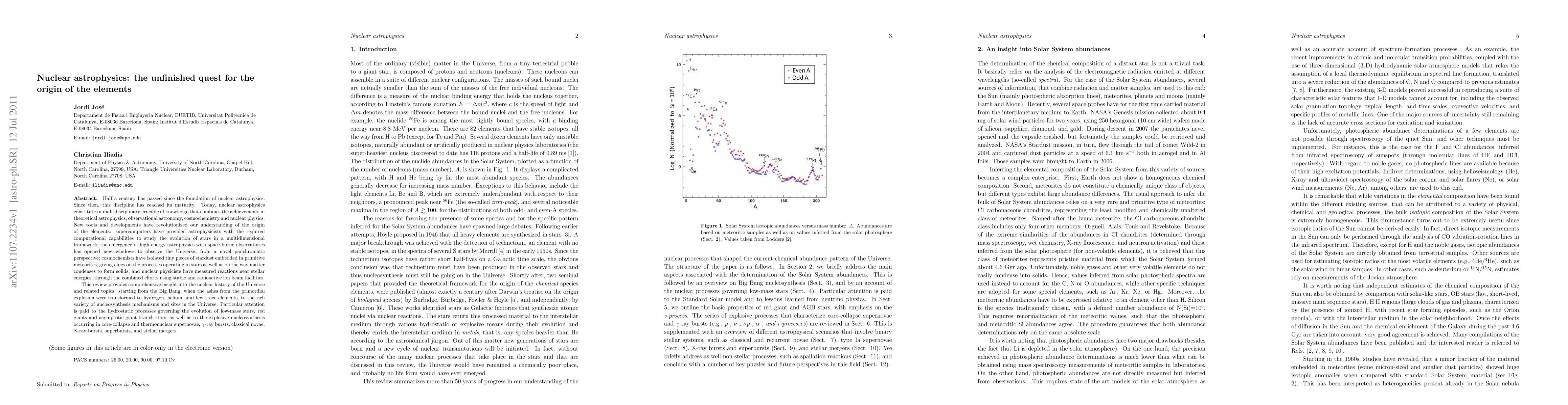 Half a century has passed since the foundation of nuclear astrophysics. Since then, this discipline has reached its maturity. Today, nuclear astrophysics constitutes a multidisciplinary crucible of knowledge that combines the achievements in theoretical astrophysics, observational astronomy, cosmochemistry and nuclear physics. New tools and developments have revolutionized our understanding of the origin of the elements: supercomputers have provided astrophysicists with the required computational capabilities to study the evolution of stars in a multidimensional framework; the emergence of high-energy astrophysics with space-borne observatories has opened new windows to observe the Universe, from a novel panchromatic perspective; cosmochemists have isolated tiny pieces of stardust embedded in primitive meteorites, giving clues on the processes operating in stars as well as on the way matter condenses to form solids; and nuclear physicists have measured reactions near stellar energies, through the combined efforts using stable and radioactive ion beam facilities. This review provides comprehensive insight into the nuclear history of the Universe and related topics: starting from the Big Bang, when the ashes from the primordial explosion were transformed to hydrogen, helium, and few trace elements, to the rich variety of nucleosynthesis mechanisms and sites in the Universe. Particular attention is paid to the hydrostatic processes governing the evolution of low-mass stars, red giants and asymptotic giant-branch stars, as well as to the explosive nucleosynthesis occurring in core-collapse and thermonuclear supernovae, gamma-ray bursts, classical novae, X-ray bursts, superbursts, and stellar mergers.