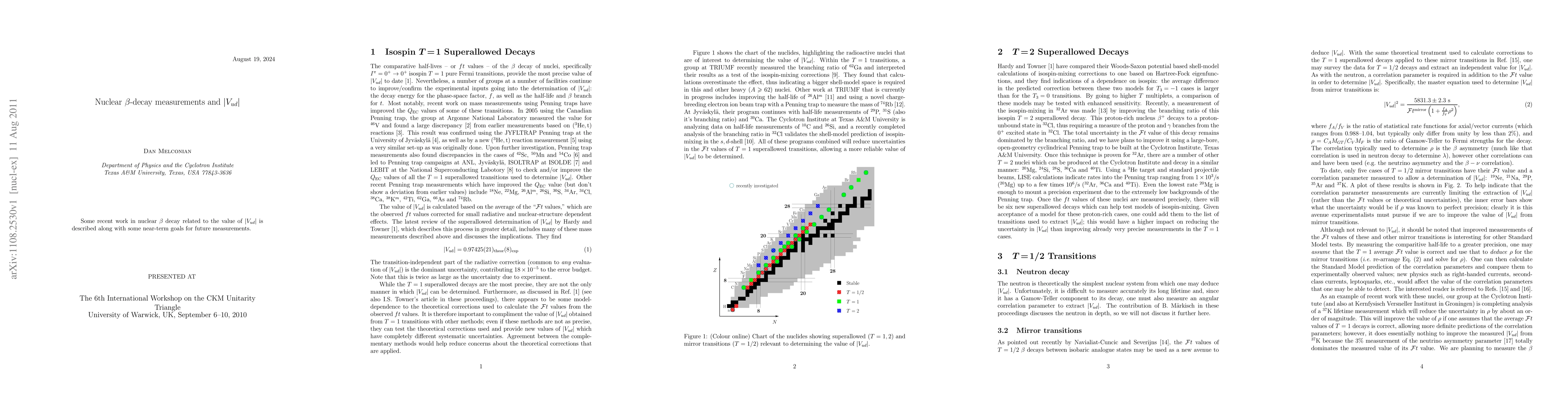 Some recent work in nuclear beta decay related to the value of |Vud| is described along with some near-term goals for future measurements.