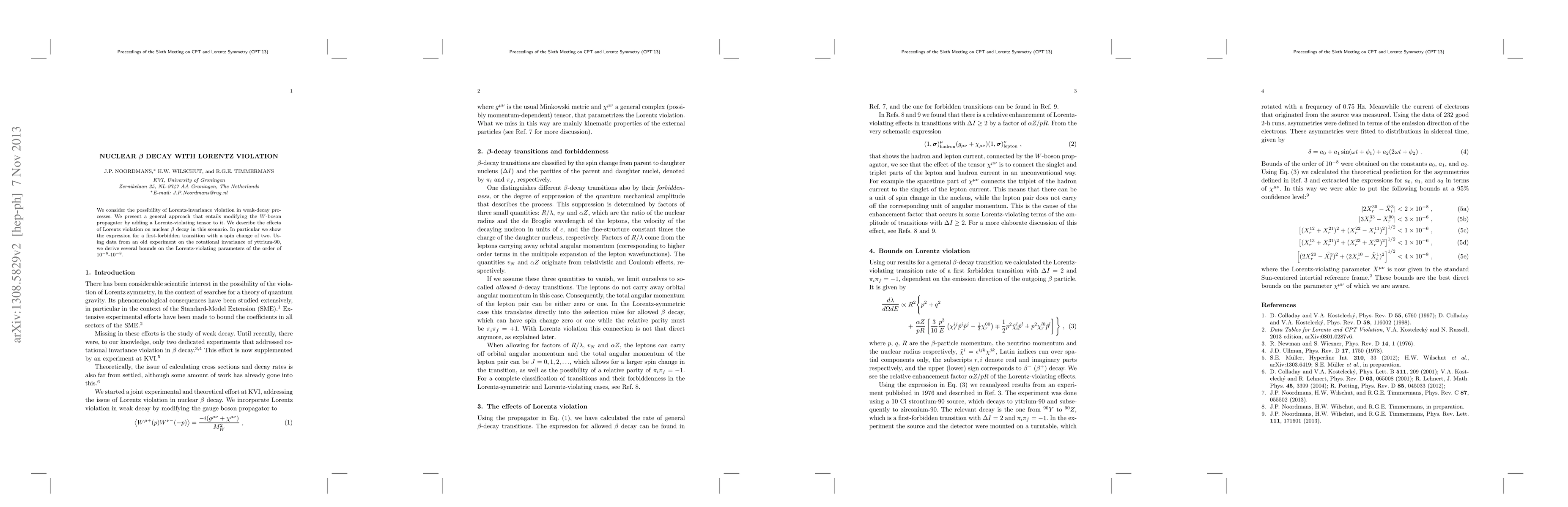 We consider the possibility of Lorentz-invariance violation in weak-decay processes. We present a general approach that entails modifying the W-boson propagator by adding a Lorentz-violating tensor to it. We describe the effects of Lorentz violation on nuclear beta decay in this scenario. In particular we show the expression for a first-forbidden transition with a spin change of two. Using data from an old experiment on the rotational invariance of yttrium-90, we derive several bounds on the Lorentz-violating parameters of the order of 10^(-6)-10^(-8).