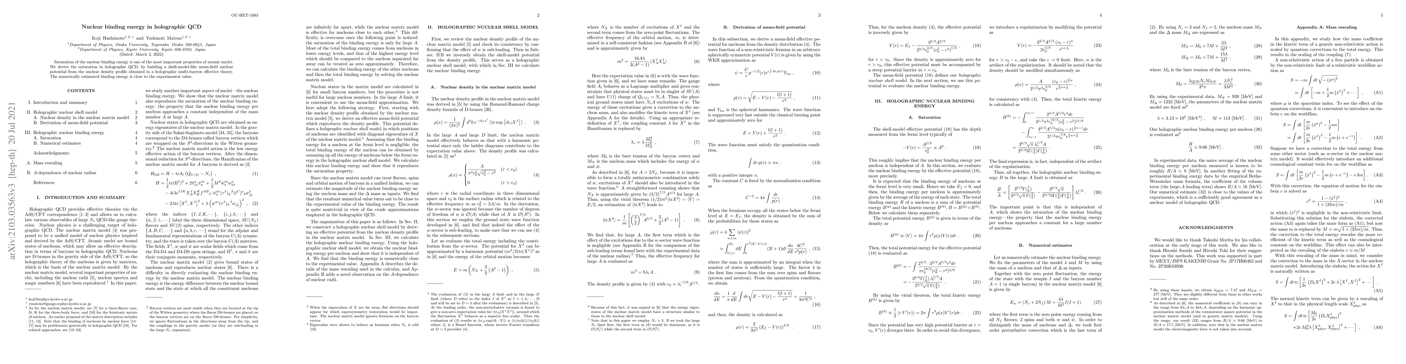 This research derives nuclear binding energy saturation in holographic QCD by constructing a shell-model-like potential from a holographic multi-baryon density profile, achieving a numerically estimated binding energy close to experimental values.