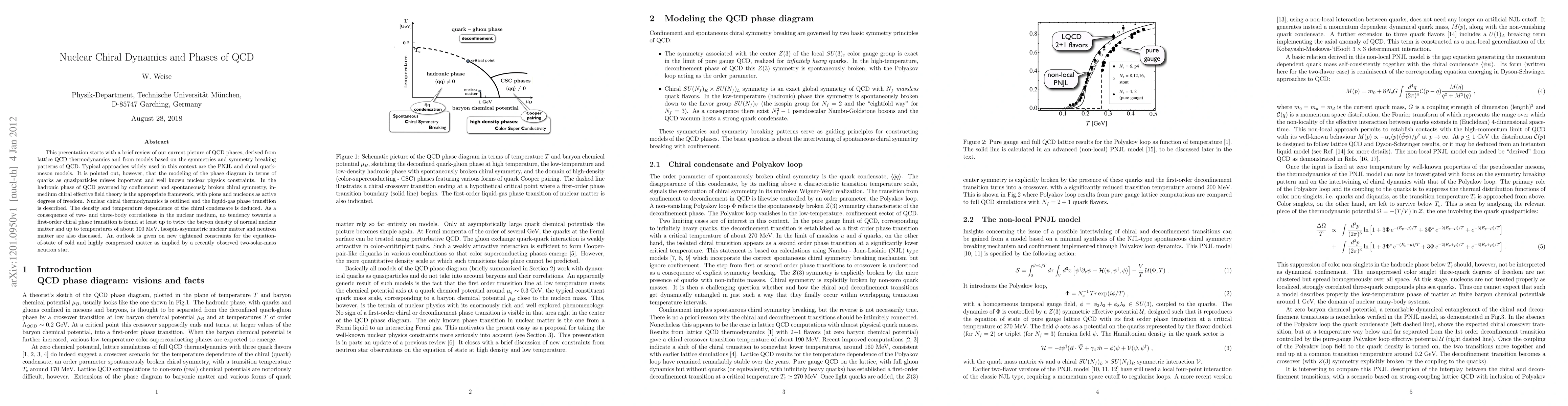 This paper reviews QCD phases using lattice QCD and models like PNJL, highlighting the importance of nuclear chiral dynamics in the hadronic phase. It concludes that two- and three-body correlations in nuclear matter prevent a first-order chiral phase transition up to twice normal nuclear density and 100 MeV temperatures.
