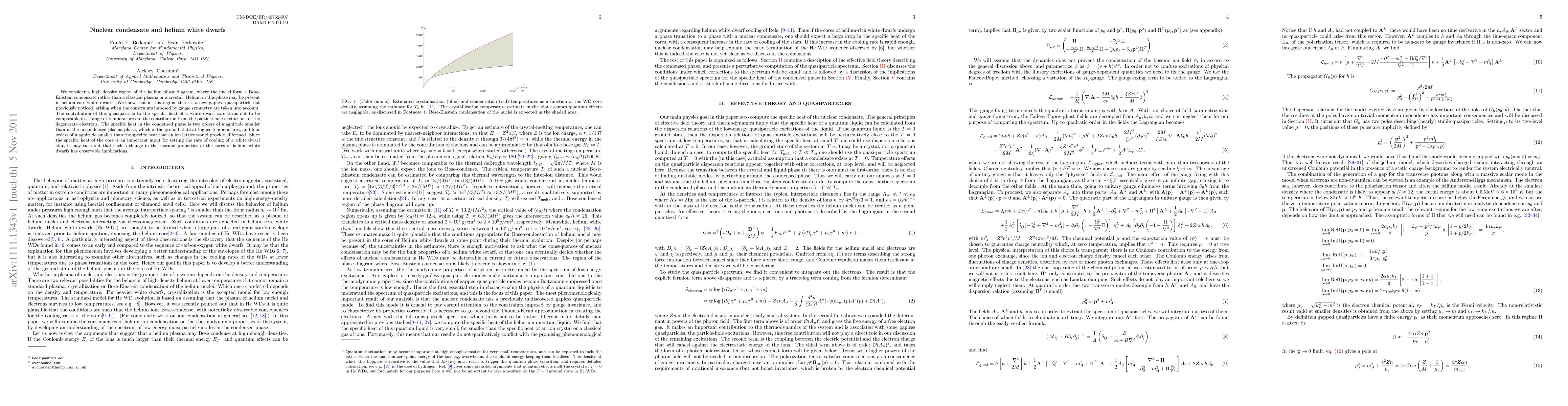 We consider a high density region of the helium phase diagram, where the nuclei form a Bose-Einstein condensate rather than a classical plasma or a crystal. Helium in this phase may be present in helium-core white dwarfs. We show that in this regime there is a new gapless quasiparticle not previously noticed, arising when the constraints imposed by gauge symmetry are taken into account. The contribution of this quasiparticle to the specific heat of a white dwarf core turns out to be comparable in a range of temperatures to the contribution from the particle-hole excitations of the degenerate electrons. The specific heat in the condensed phase is two orders of magnitude smaller than in the uncondensed plasma phase, which is the ground state at higher temperatures, and four orders of magnitude smaller than the specific heat that an ion lattice would provide, if formed. Since the specific heat of the core is an important input for setting the rate of cooling of a white dwarf star, it may turn out that such a change in the thermal properties of the cores of helium white dwarfs has observable implications.