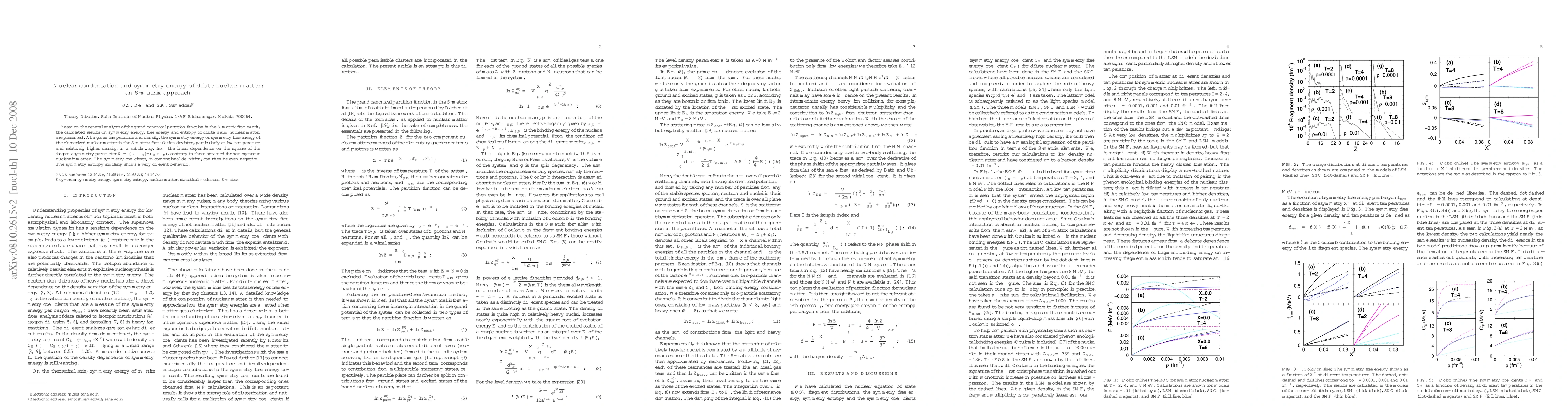 Based on the general analysis of the grand canonical partition function in the S-matrix framework, the calculated results on symmetry energy, free energy and entropy of dilute warm nuclear matter are presented. At a given temperature and density, the symmetry energy or symmetry free energy of the clusterized nuclear matter in the S-matrix formulation deviates, particularly at low temperature and relatively higher density, in a subtle way, from the linear dependence on the square of the isospin asymmetry parameter $X=(\rho_n-\rho_p)/(\rho_n+\rho_p)$, contrary to those obtained for homogeneous nucleonic matter. The symmetry coefficients, in the conventional definition, can then be even negative. The symmetry entropy similarly shows a very different behavior.