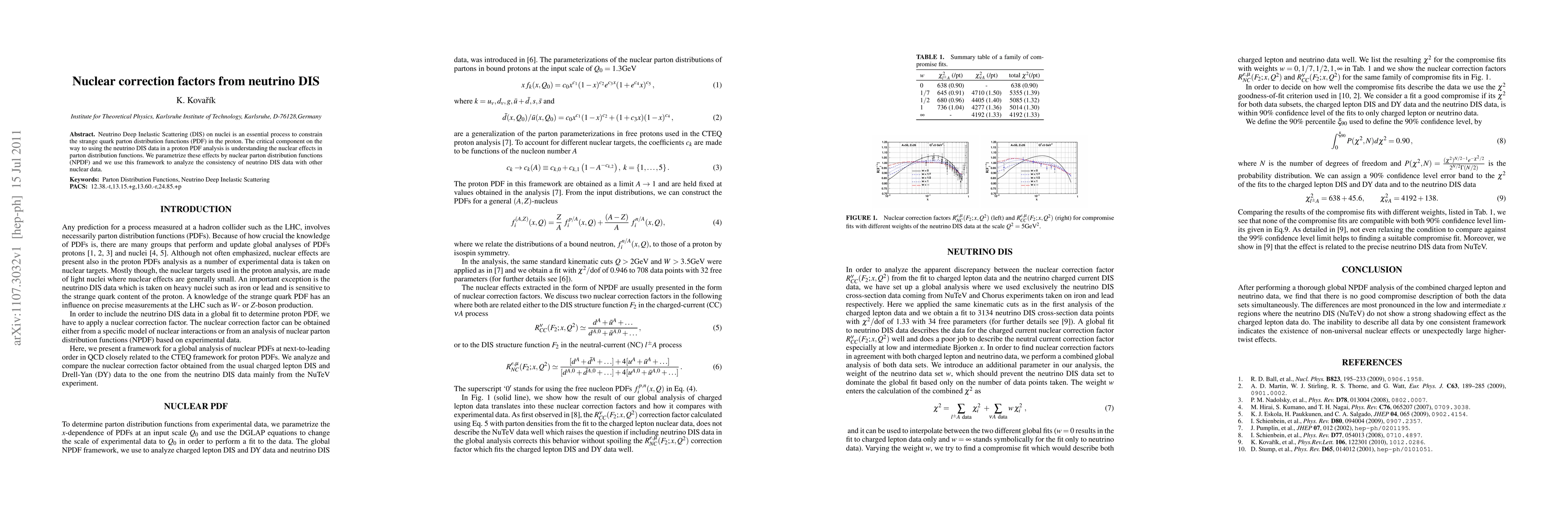 This paper investigates nuclear correction factors in neutrino Deep Inelastic Scattering (DIS) to better understand nuclear effects on parton distribution functions, aiming to improve the extraction of strange quark distributions from proton PDF analyses. The study uses a parametrized framework to analyze the consistency of neutrino DIS data with other nuclear data.