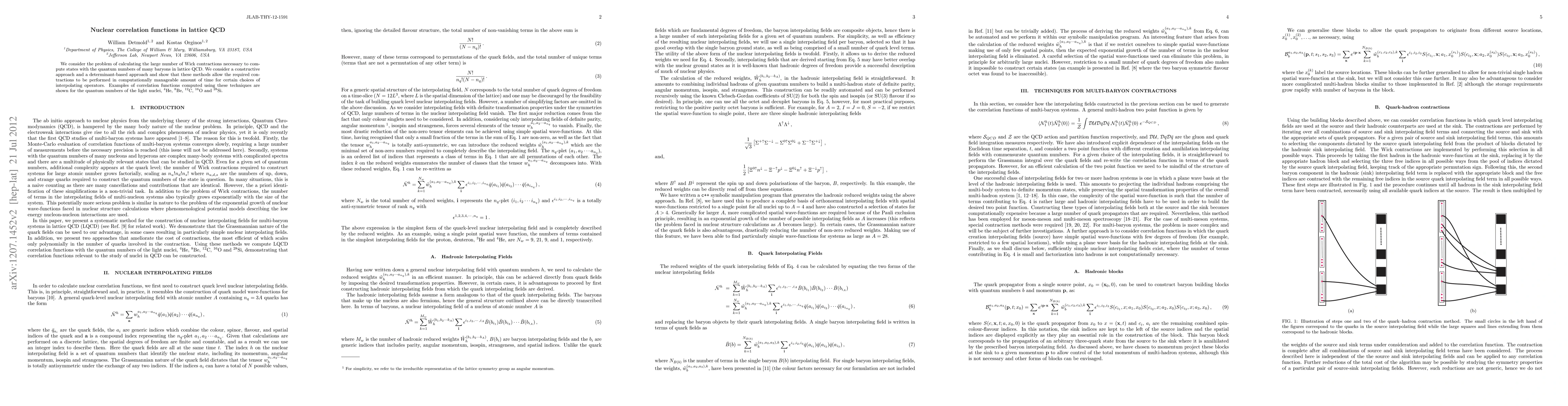 We consider the problem of calculating the large number of Wick contractions necessary to compute states with the quantum numbers of many baryons in lattice QCD. We consider a constructive approach and a determinant-based approach and show that these methods allow the required contractions to be performed in computationally manageable amount of time for certain choices of interpolating operators. Examples of correlation functions computed using these techniques are shown for the quantum numbers of the light nuclei, He, Be, C, O and Si.