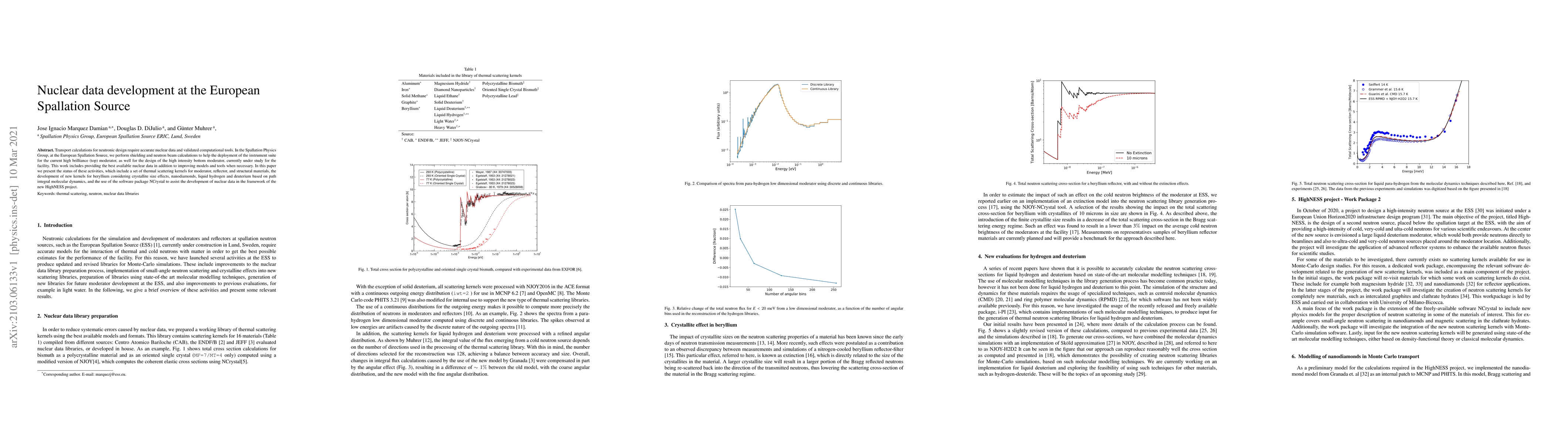 Transport calculations for neutronic design require accurate nuclear data and validated computational tools. In the Spallation Physics Group, at the European Spallation Source, we perform shielding and neutron beam calculations to help the deployment of the instrument suite for the current high brilliance (top) moderator, as well for the design of the high intensity bottom moderator, currently under study for the facility. This work includes providing the best available nuclear data in addition to improving models and tools when necessary. In this paper we present the status of these activities, which include a set of thermal scattering kernels for moderator, reflector, and structural materials, the development of new kernels for beryllium considering crystallite size effects, nanodiamonds, liquid hydrogen and deuterium based on path integral molecular dynamics, and the use of the software package NCrystal to assist the development of nuclear data in the framework of the new HighNESS project.
