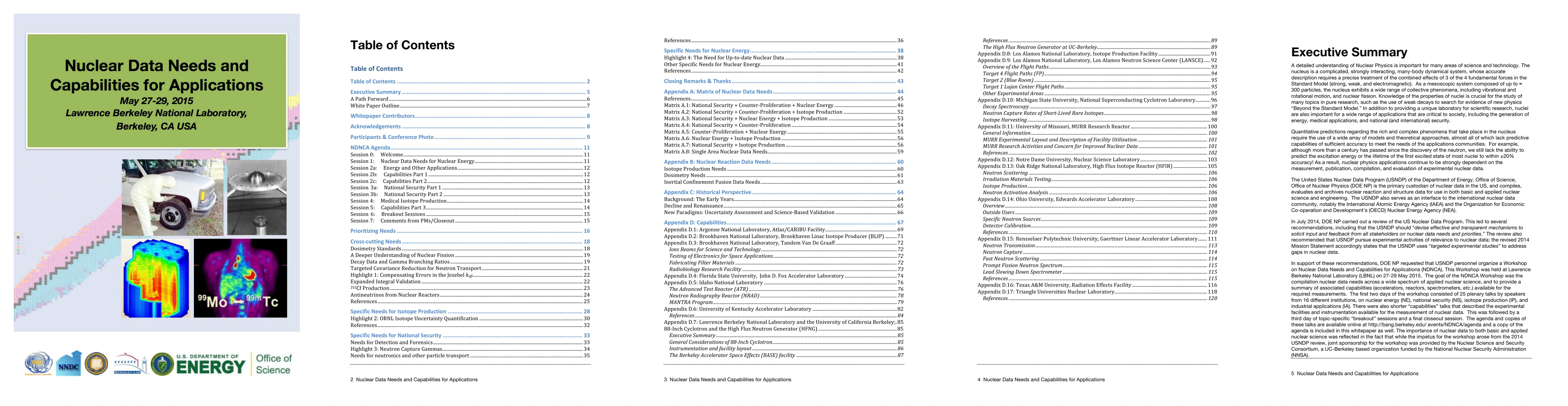 The Workshop on Nuclear Data Needs and Capabilities for Applications (NDNCA) was held at Lawrence Berkeley National Laboratory (LBNL) on 27-29 May 2015. The goals of NDNCA were compile nuclear data needs across a wide spectrum of applied nuclear science, and to provide a summary of associated capabilities (accelerators, reactors, spectrometers, etc.) available for required measurements. This document represents the results of the workshop and a compilation of other recent documents assessing nuclear data needs for the above-mentioned applications.