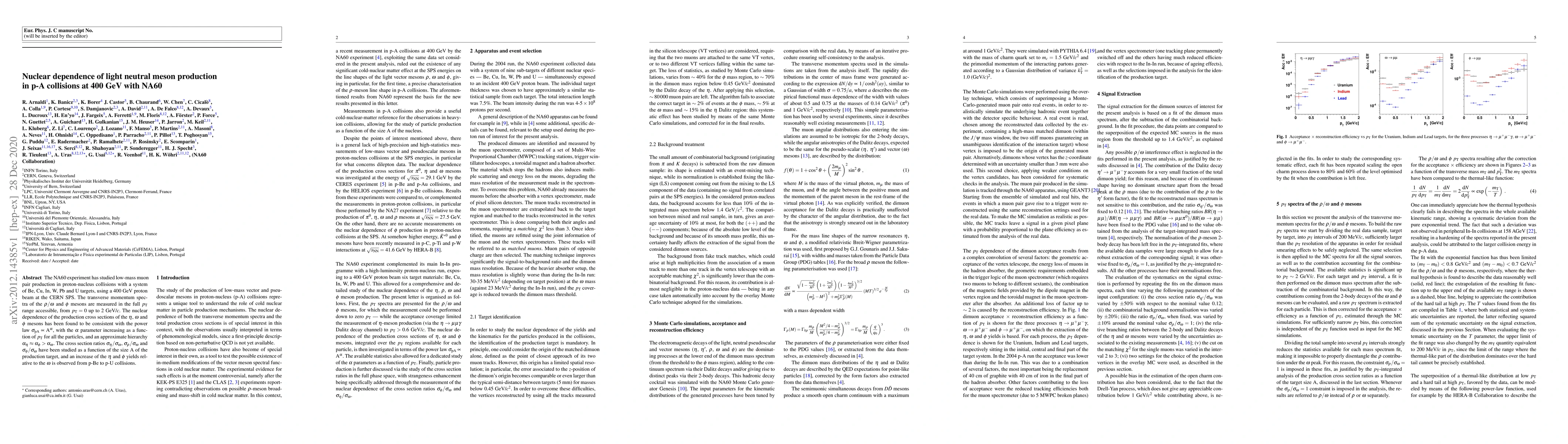 The NA60 experiment has studied low-mass muon pair production in proton-nucleus collisions with a system of Be, Cu, In, W, Pb and U targets, using a 400 GeV proton beam at the CERN SPS. The transverse momentum spectra of the $\rho/\omega$ and $\phi$ mesons are measured in the full $p_\mathrm{T}$ range accessible, from $p_\mathrm{T} = 0$ up to 2 GeV/$c$. The nuclear dependence of the production cross sections of the $\eta$, $\omega$ and $\phi$ mesons has been found to be consistent with the power law $\sigma_\mathrm{pA} \propto \mathrm{A}^\alpha$, with the $\alpha$ parameter increasing as a function of $p_\mathrm{T}$ for all the particles, and an approximate hierarchy $\alpha_\eta \approx \alpha_\phi > \alpha_\omega$. The cross section ratios $\sigma_\eta/\sigma_\omega$, $\sigma_\rho/\sigma_\omega$ and $\sigma_\phi/\sigma_\omega$ have been studied as a function of the size A of the production target, and an increase of the $\eta$ and $\phi$ yields relative to the $\omega$ is observed from p-Be to p-U collisions.