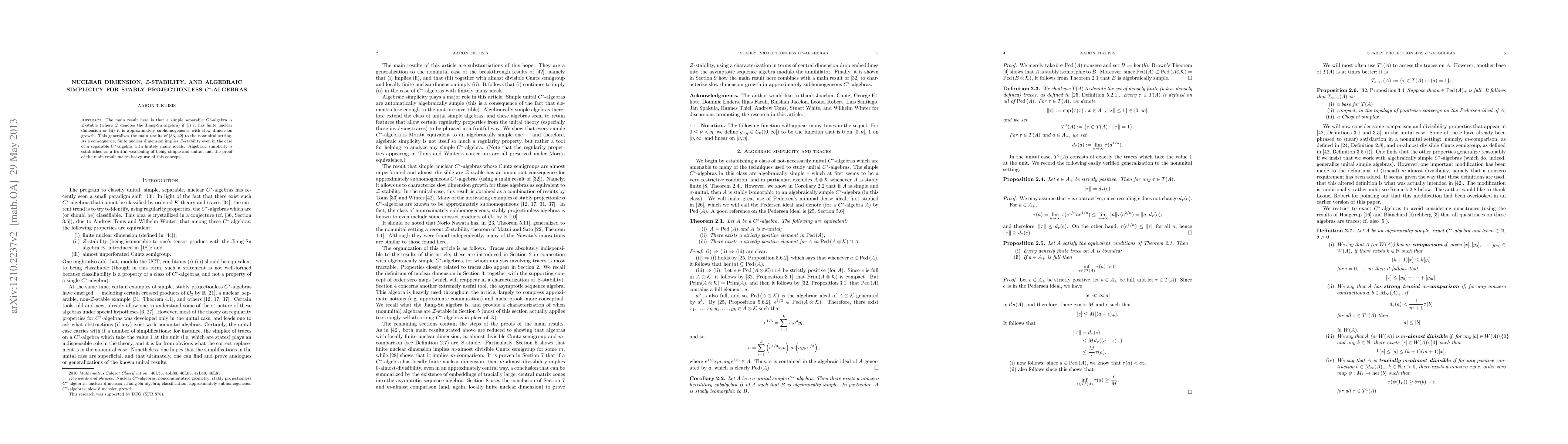 The paper introduces and utilizes the concept of algebraic simplicity, extends Z-stability to nonunital C*-algebras, and establishes a connection between finite nuclear dimension and Z-stability.
