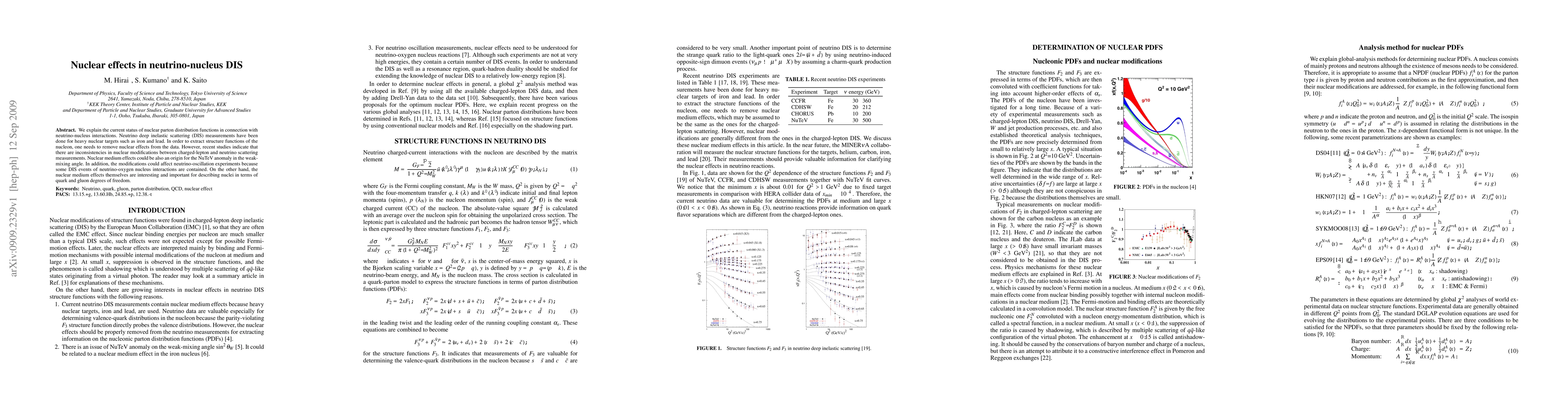 We explain the current status of nuclear parton distribution functions in connection with neutrino-nucleus interactions. Neutrino deep inelastic scattering (DIS) measurements have been done for heavy nuclear targets such as iron and lead. In order to extract structure functions of the nucleon, one needs to remove nuclear effects from the data. However, recent studies indicate that there are inconsistencies in nuclear modifications between charged-lepton and neutrino scattering measurements. Nuclear medium effects could be also an origin for the NuTeV anomaly in the weak-mixing angle. In addition, the modifications could affect neutrino-oscillation experiments because some DIS events of neutrino-oxygen nucleus interactions are contained. On the other hand, the nuclear medium effects themselves are interesting and important for describing nuclei in terms of quark and gluon degrees of freedom.