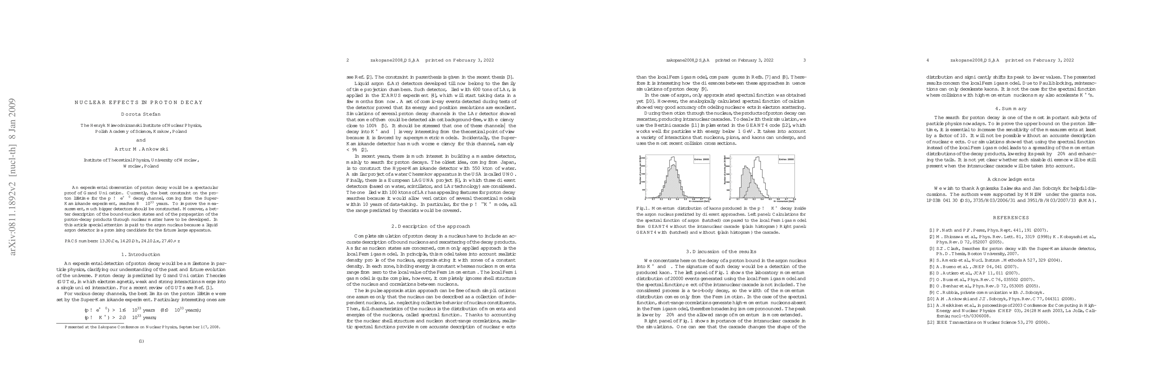 This paper discusses the significance of experimental observations of proton decay as evidence for grand unification theories, emphasizing the need for larger detectors like liquid argon ones. It also highlights the importance of understanding nuclear effects, particularly in the argon nucleus, to improve proton decay measurements.