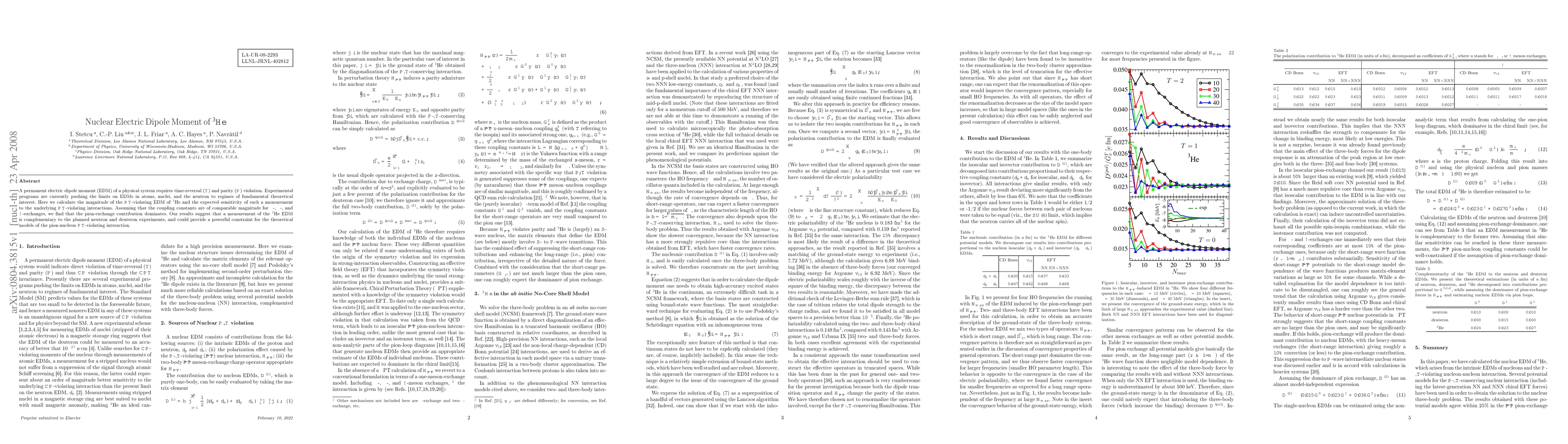 This paper calculates the expected electric dipole moment (EDM) of 3He, suggesting it could offer insights into time-reversal and parity violation. The pion-exchange contribution is found to be dominant, making 3He EDM measurements complementary to planned neutron and deuteron experiments.