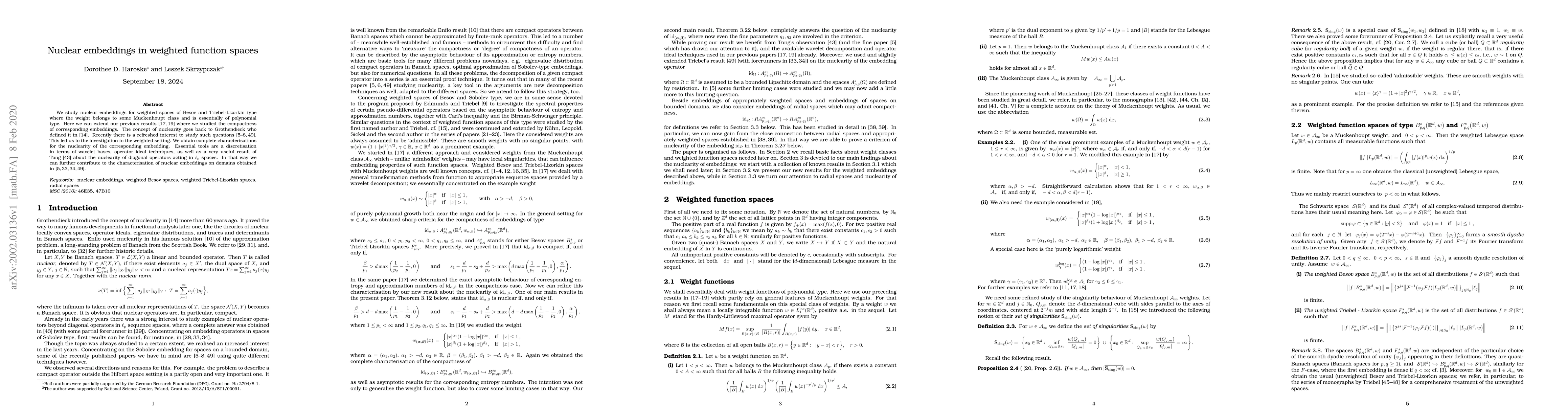 Researchers studied nuclear embeddings in weighted spaces of Besov and Triebel-Lizorkin type, finding complete characterisations for the nuclearity of corresponding embeddings.