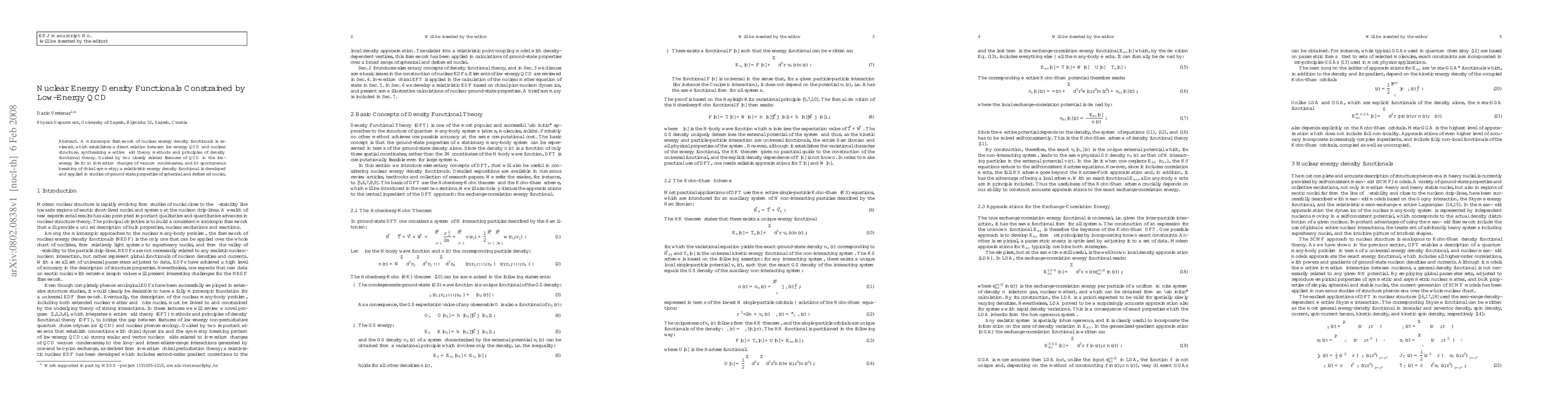 This paper reviews nuclear energy density functionals that connect low-energy QCD principles, employing effective field theory and density functional theory. It develops a relativistic functional based on QCD's in-medium condensate changes and chiral symmetry breaking, and applies it to study ground-state properties of spherical and deformed nuclei.