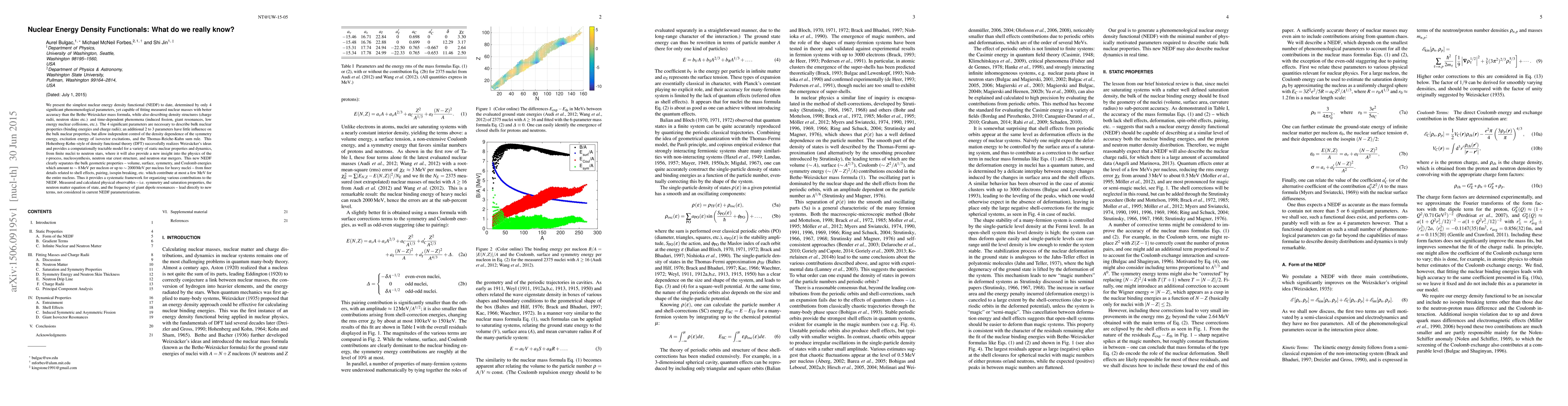 We present the simplest nuclear energy density functional (NEDF) to date, determined by only 4 significant phenomenological parameters, yet capable of fitting measured nuclear masses with better accuracy than the Bethe-Weizs\"acker mass formula, while also describing density structures (charge radii, neutron skins etc.) and time-dependent phenomena (induced fission, giant resonances, low energy nuclear collisions, etc.). The 4 significant parameters are necessary to describe bulk nuclear properties (binding energies and charge radii); an additional 2 to 3 parameters have little influence on the bulk nuclear properties, but allow independent control of the density dependence of the symmetry energy and isovector excitations, in particular the Thomas-Reiche-Kuhn sum rule. This Hohenberg-Kohn-style of density functional theory successfully realizes Weizs\"acker's ideas and provides a computationally tractable model for a variety of static nuclear properties and dynamics, from finite nuclei to neutron stars, where it will also provide a new insight into the physics of the r-process, nucleosynthesis, and neutron star crust structure. This new NEDF clearly separates the bulk geometric properties - volume, surface, symmetry, and Coulomb energies which amount to 8MeV per nucleon or up to 2000MeV per nucleus for heavy nuclei - from finer details related to shell effects, pairing, isospin breaking, etc. which contribute at most a few MeV for the entire nucleus. Thus it provides a systematic framework for organizing various contributions to the NEDF. Measured and calculated physical observables - symmetry and saturation properties, the neutron matter equation of state, and the frequency of giant dipole resonances - lead directly to new terms not considered in current NEDF parameterizations.