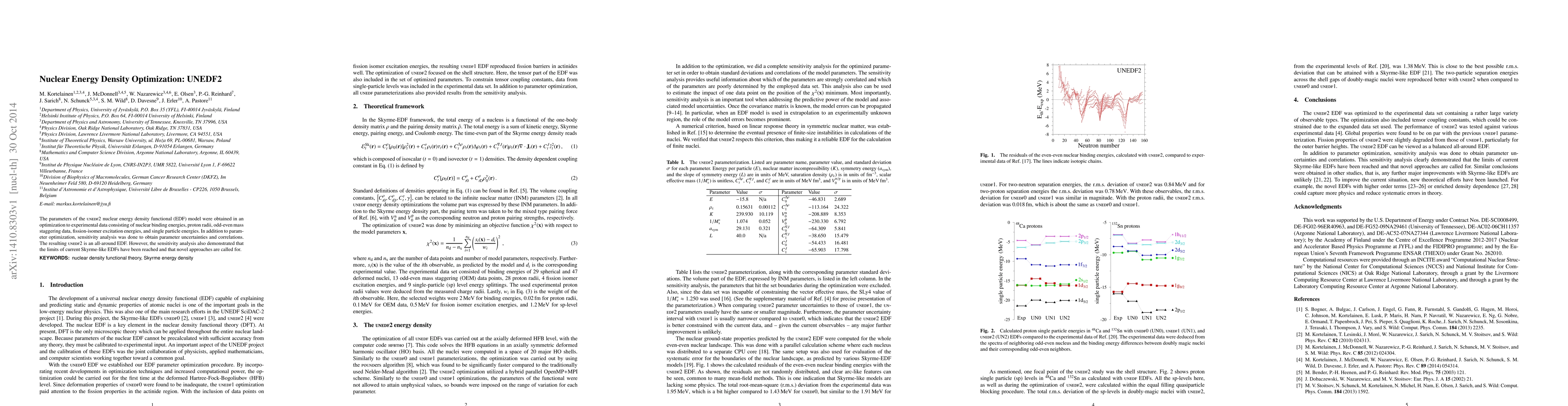 The UNEDF2 nuclear energy density functional model parameters were optimized using experimental data, including nuclear binding energies and fission-isomer excitation energies, revealing significant parameter uncertainties and correlations. The study suggests that current Skyrme-like EDFs have reached their limits, necessitating new approaches.