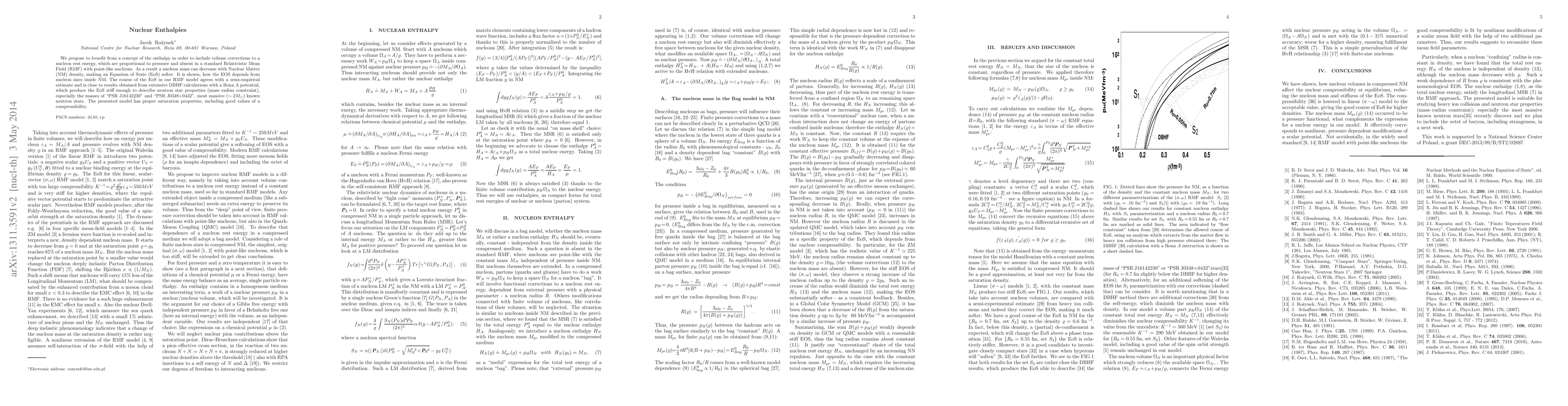 In a compressed Nuclear Matter (NM) an increasing pressure between the nucleons starts to increase the ratio of a nucleon Fermi to average single particle energy and in accordance with the Hugenholtz-van Hove theorem the longitudinal Momentum Sum Rule (MSR) is broken in a Relativistic Mean Field (RMF) approach. We propose to benefit from the concept of enthalpy in order to show how to fulfill the MSR above a saturation density with pressure corrections. As a result a nucleon mass can decrease with density, making the Equation of State (EoS) softer. The course of the EoS in our modified RMF model is close to a semi-empirical estimate and to results obtained from extensive DBHF calculations with a Bonn A potential, which produce the EoS stiff enough to describe neutron star properties (mass-radius constraint), especially the most massive known neutron star. The presented model has proper saturation properties, including good values of a compressibility and a spin-orbit term.