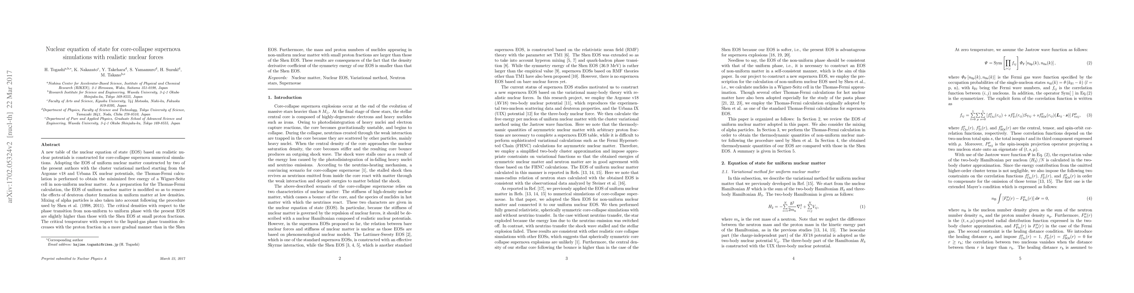 A new table of nuclear equation of state (EOS) is created for core-collapse supernova simulations, showing critical densities and temperatures that differ from existing EOS.