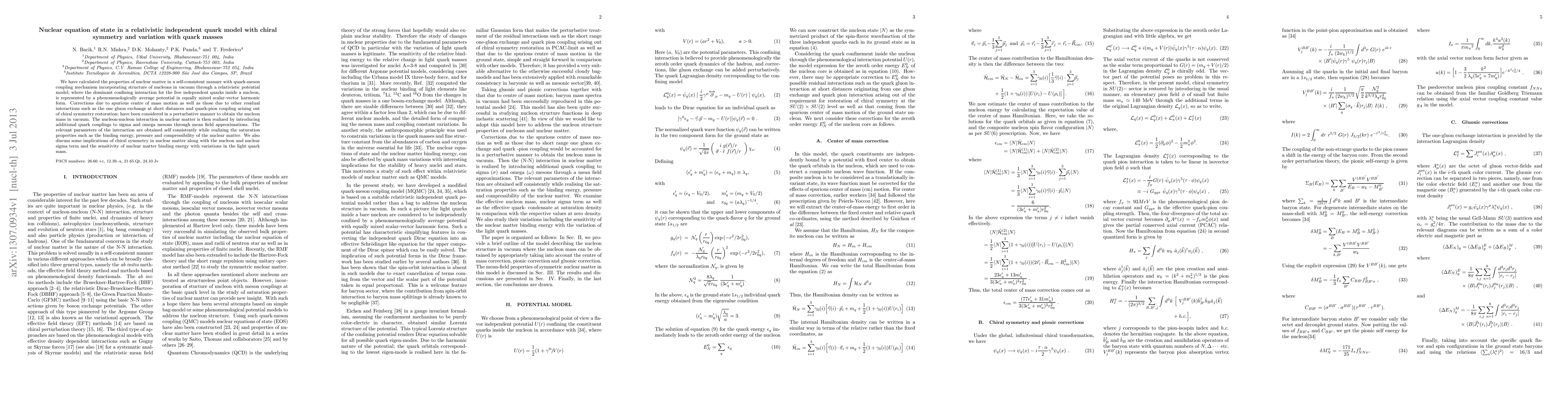 This research calculates nuclear matter properties using a relativistic quark model with quark-meson coupling, considering nucleon structure and vacuum corrections. It explores chiral symmetry implications, nucleon and nuclear sigma terms, and binding energy sensitivity to light quark mass variations.