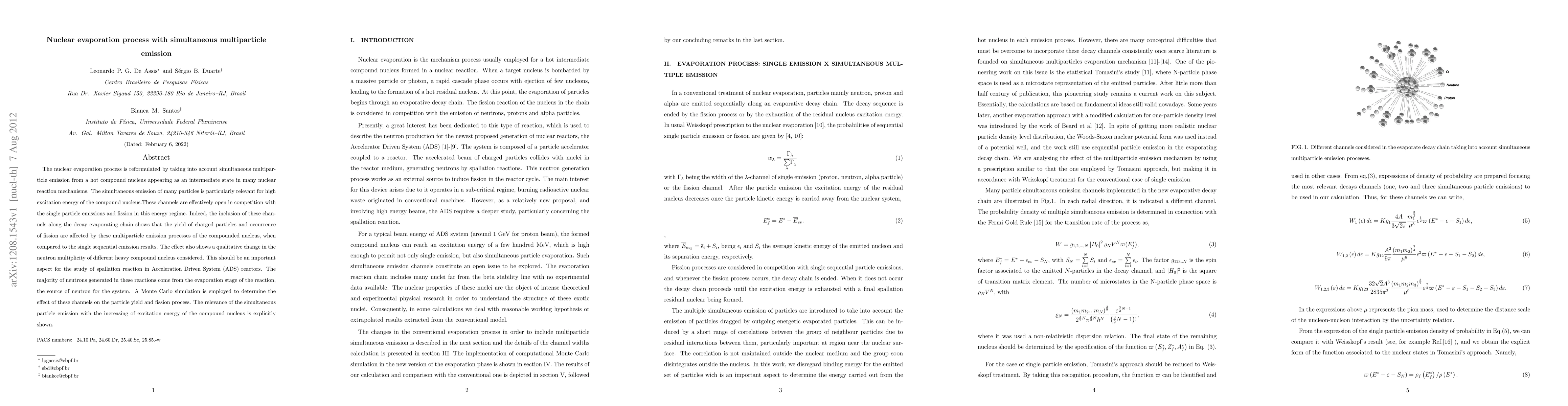 The nuclear evaporation process is reformulated by taking into account simultaneous multiparticle emission from a hot compound nucleus appearing as an intermediate state in many nuclear reaction mechanisms. The simultaneous emission of many particles is particularly relevant for high excitation energy of the compound nucleus.These channels are effectively open in competition with the single particle emissions and fission in this energy regime. Indeed, the inclusion of these channels along the decay evaporating chain shows that the yield of charged particles and occurrence of fission are affected by these multiparticle emission processes of the compounded nucleus, when compared to the single sequential emission results. The effect also shows a qualitative change in the neutron multiplicity of different heavy compound nucleus considered. This should be an important aspect for the study of spallation reaction in Acceleration Driven System (ADS) reactors. The majority of neutrons generated in these reactions come from the evaporation stage of the reaction, the source of neutron for the system. A Monte Carlo simulation is employed to determine the effect of these channels on the particle yield and fission process. The relevance of the simultaneous particle emission with the increasing of excitation energy of the compound nucleus is explicitly shown.
