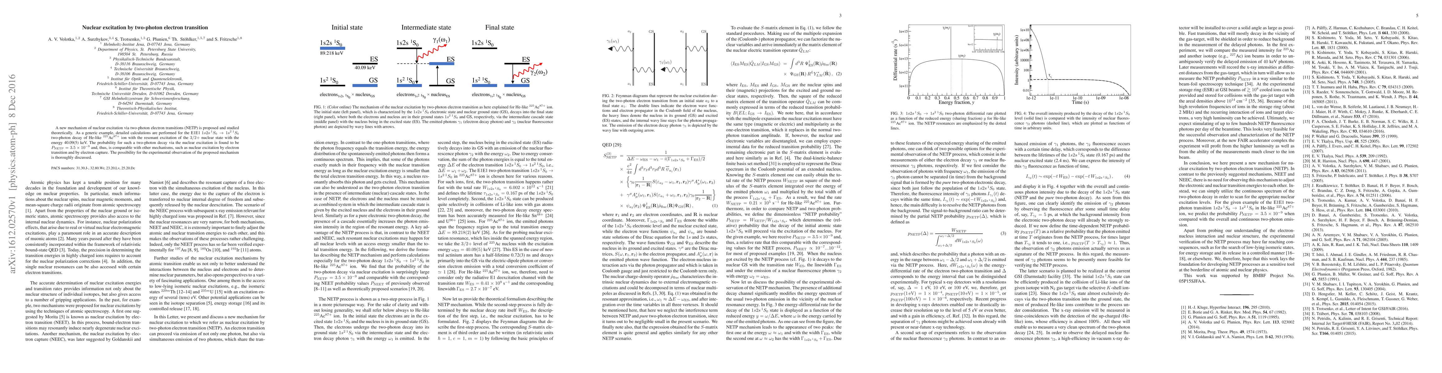 This paper proposes a new mechanism for nuclear excitation through two-photon electron transitions (NETP) and calculates the probability for the $E1E1$ decay in He-like $^{225}$Ac$^{87+}$, finding it to be $P_{\rm NETP} = 3.5 \times 10^{-9}$. The study discusses the feasibility of experimentally observing this mechanism.