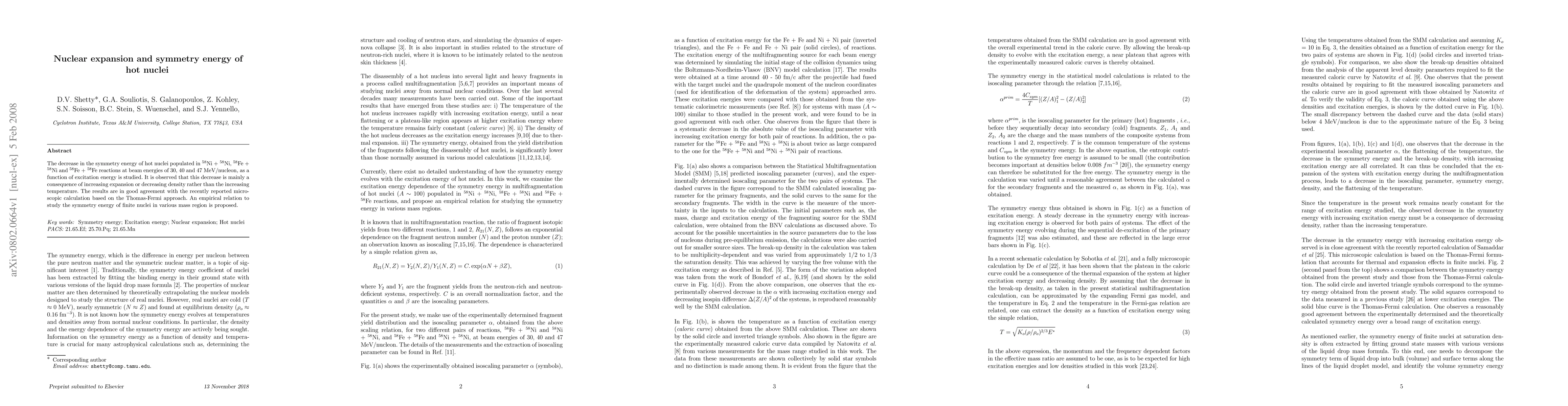 The decrease in the symmetry energy of hot nuclei populated in $^{58}$Ni + $^{58}$Ni, $^{58}$Fe + $^{58}$Ni and $^{58}$Fe + $^{58}$Fe reactions at beam energies of 30, 40, and 47 MeV/nucleon, as a function of excitation energy is studied. It is observed that this decrease is mainly a consequence of increasing expansion or decreasing density rather than the increasing temperature. The results are in good agreement with the recently reported microscopic calculation based on the Thomas-Fermi approach. An empirical relation to study the symmetry energy of finite nuclei in various mass region is proposed.