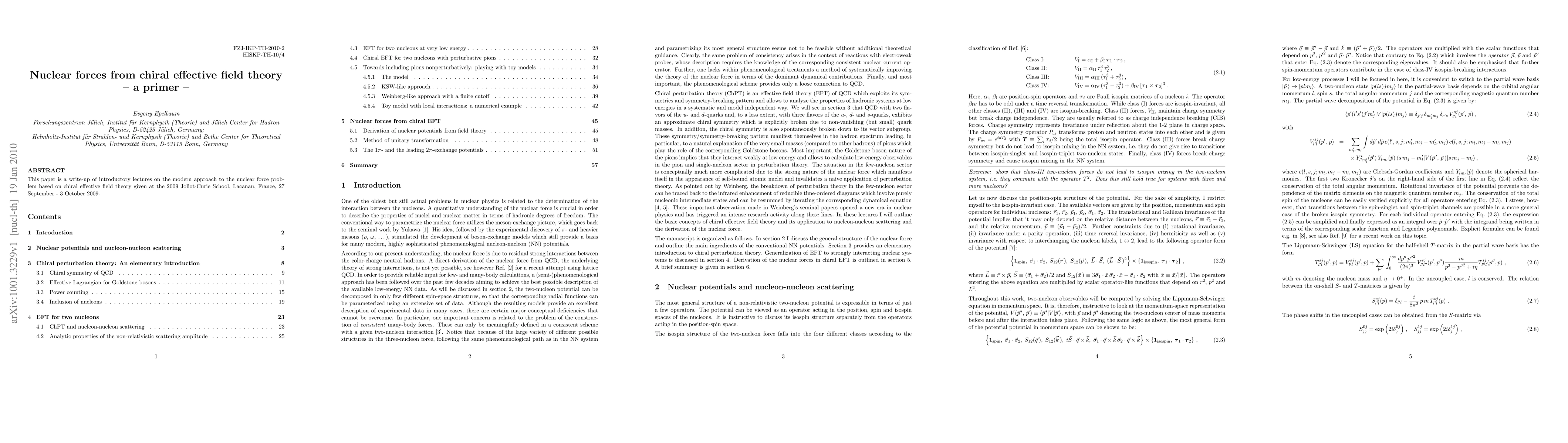 This paper provides an introduction to the modern approach to nuclear forces using chiral effective field theory, based on lectures from the 2009 Joliot-Curie School in Lacanau, France. It aims to explain the methodology and principles of this theoretical framework for nuclear interactions.