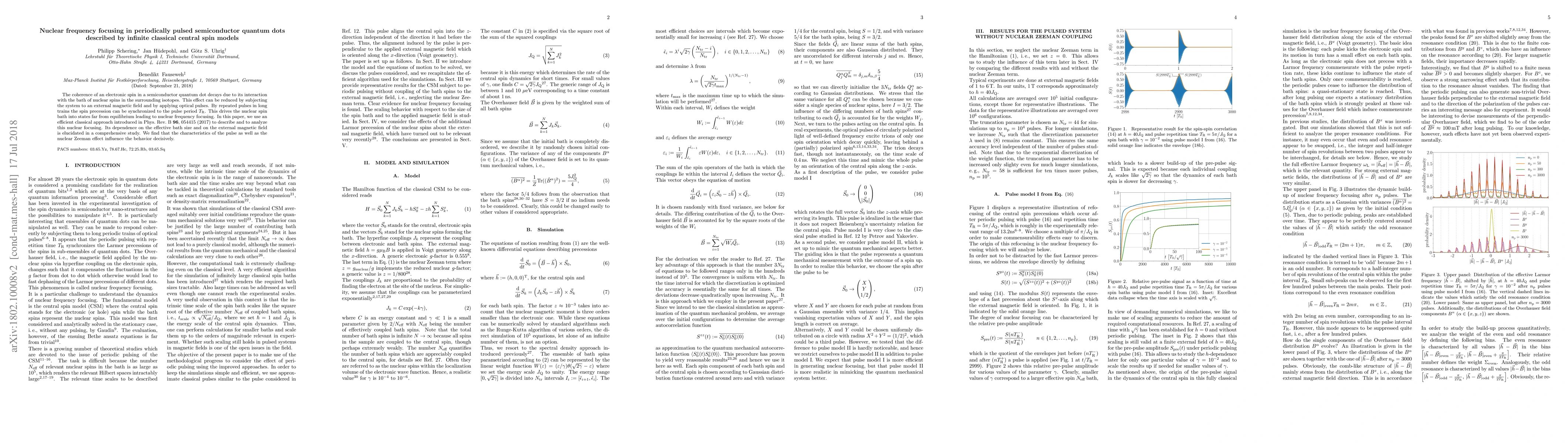 This paper explores nuclear frequency focusing in semiconductor quantum dots using infinite classical central spin models, demonstrating how periodic optical pulses can synchronize spin precession and drive nuclear spin baths into non-equilibrium states. The study reveals that the effectiveness of this focusing depends significantly on the pulse characteristics and the external magnetic field.