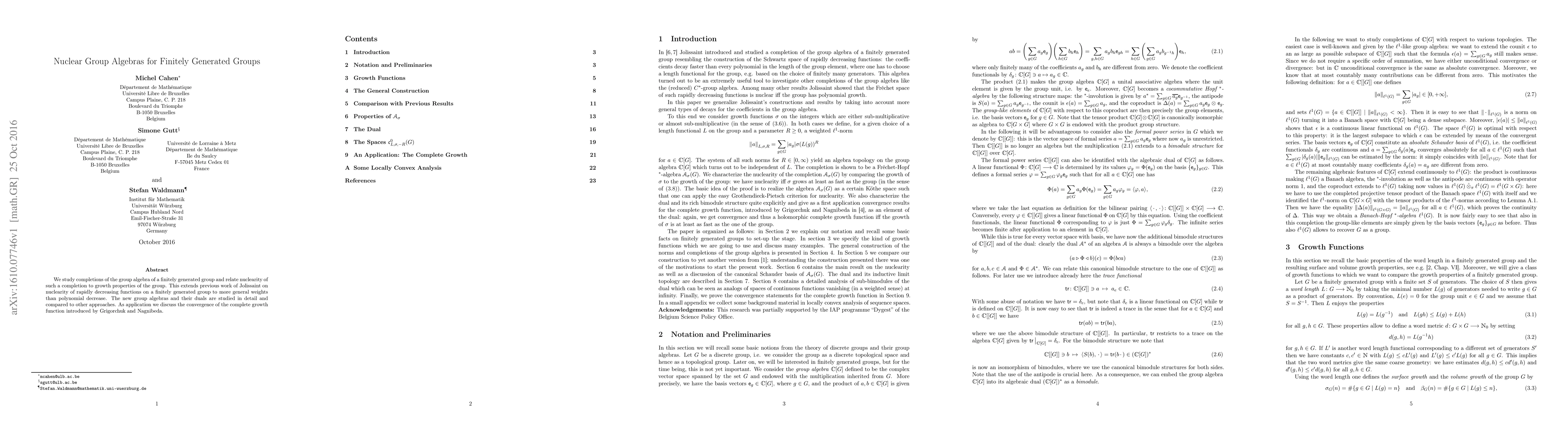 Researchers studied completions of group algebras for finitely generated groups, relating nuclearity to growth properties and comparing their results to other approaches, with implications for understanding the convergence of complete growth functions.