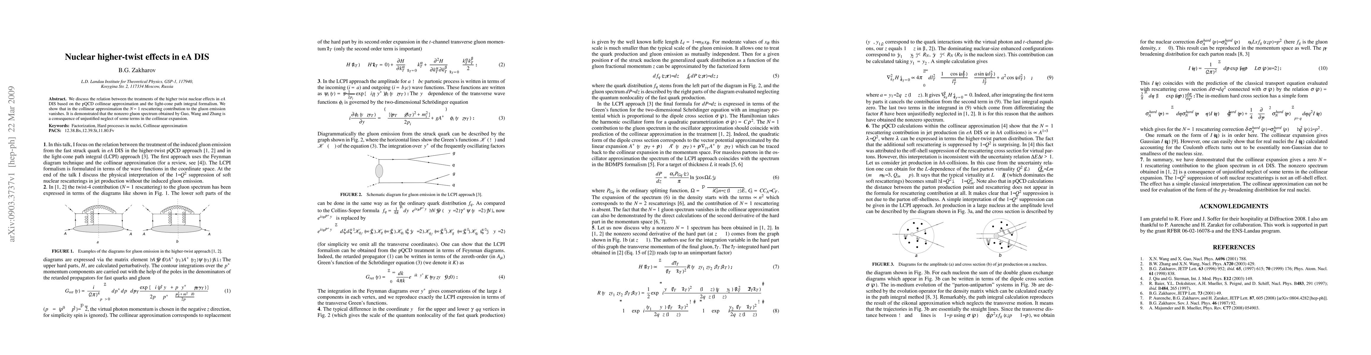 We discuss the relation between the treatments of the higher twist nuclear effects in eA DIS based on the pQCD collinear approximation and the light-cone path integral formalism. We show that in the collinear approximation the N=1 rescattering contribution to the gluon emission vanishes. It is demonstrated that the nonzero gluon spectrum obtained by Guo, Wang and Zhang is a consequence of unjustified neglect of some terms in the collinear expansion.