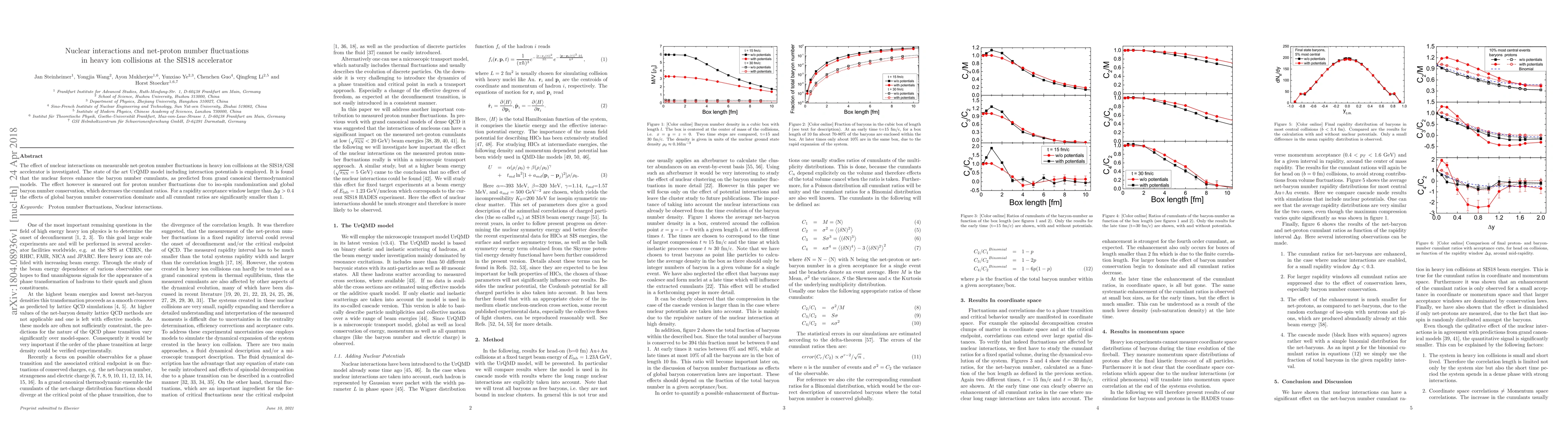 This study investigates nuclear interactions' impact on net-proton number fluctuations in heavy ion collisions at the SIS18 accelerator using the UrQMD model. It finds that nuclear forces enhance baryon number cumulants, but global baryon number conservation and iso-spin randomization diminish these effects, leading to cumulant ratios significantly smaller than 1 for rapidities $\Delta y > 0.4$.