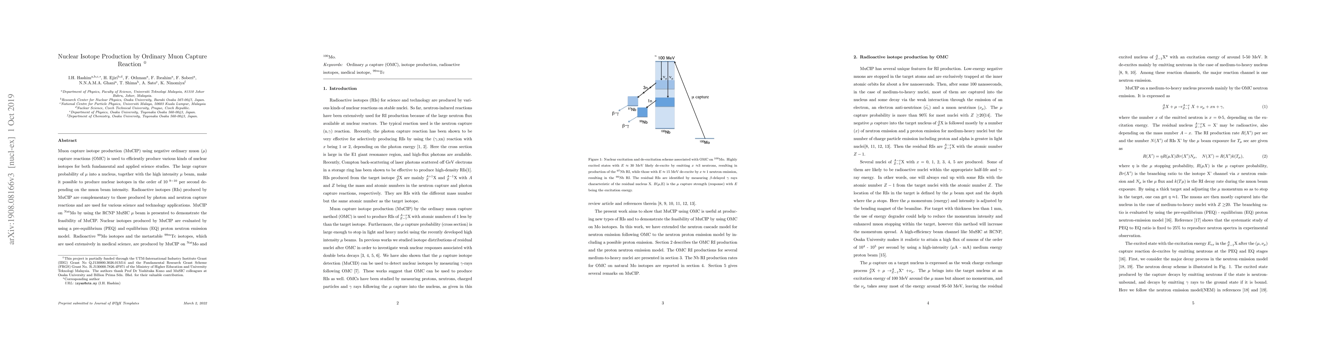 This paper explores the efficient production of nuclear isotopes via muon capture reactions, demonstrating the feasibility of MuCIP using a high-intensity muon beam. The study highlights the production of medically significant isotopes like $^{99}$Mo and $^{99m}$Tc, showcasing their potential for science and technology applications.