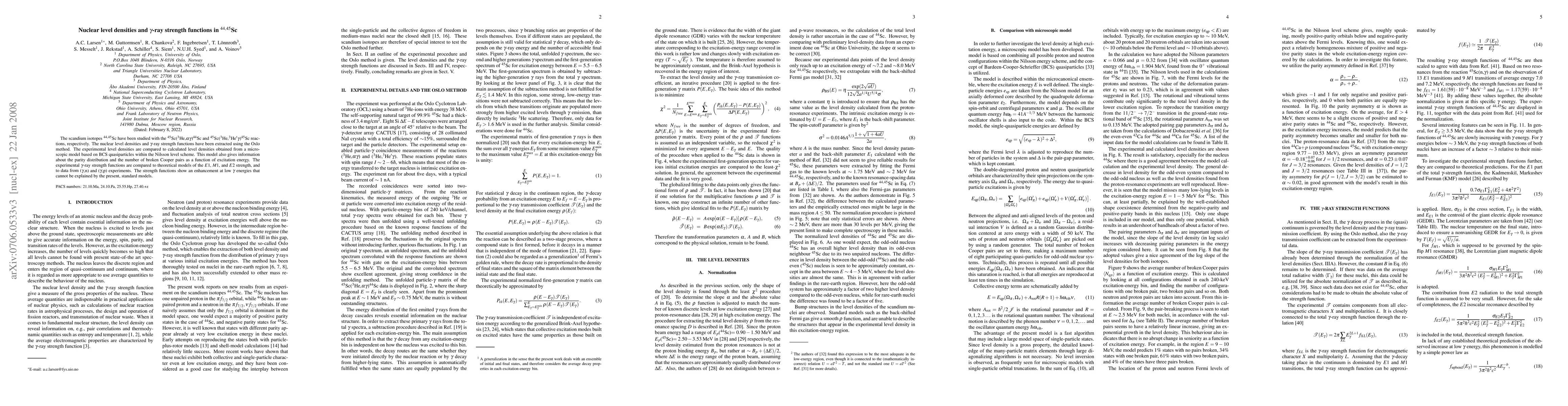 This study investigates the nuclear level densities and gamma-ray strength functions in scandium isotopes 44,45Sc using the Oslo method. Experimental results are compared to theoretical models, revealing an unexplained enhancement in gamma-ray strength functions at low energies.